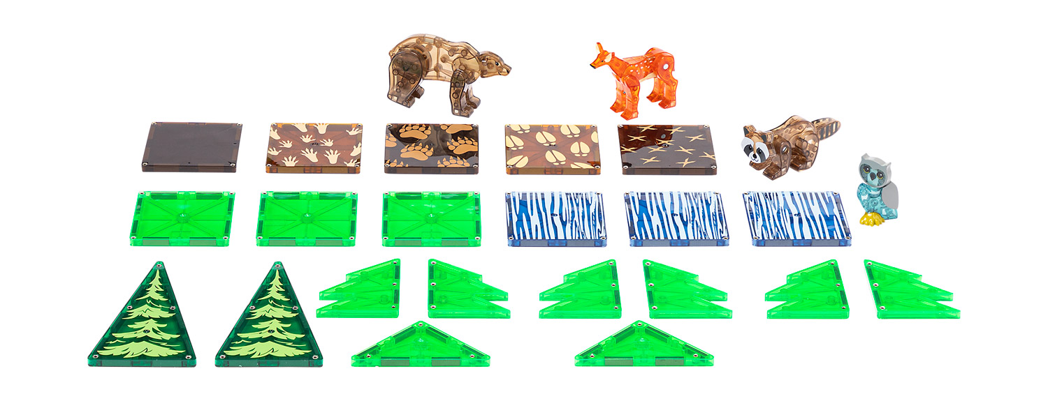 Mit dem 25-teiligen Set wird das fantasievolle Spiel zum Leben erweckt. Kinder können ihre eigenen Geschichten und Abenteuer erfinden, während sie ihre einzigartige Waldszene mit hoch aufragenden Bäumen und sprudelnden Bächen bauen.