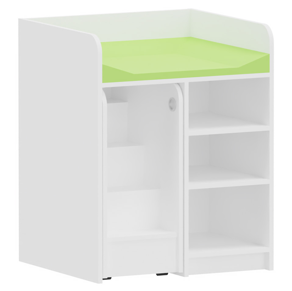 Die Kinder helfen aktiv mit, gleichzeitig wird der Rücken der pädagogischen Fachkraft entlastet. Die Treppe ist auf stabilen Rollen geführt und kann herausgezogen und arretiert werden. Daneben ist ein offenes Fach mit 2 verstellbaren Fachböden. Passende Wickelauflage 80 x 73 cm bitte separat bestellen.