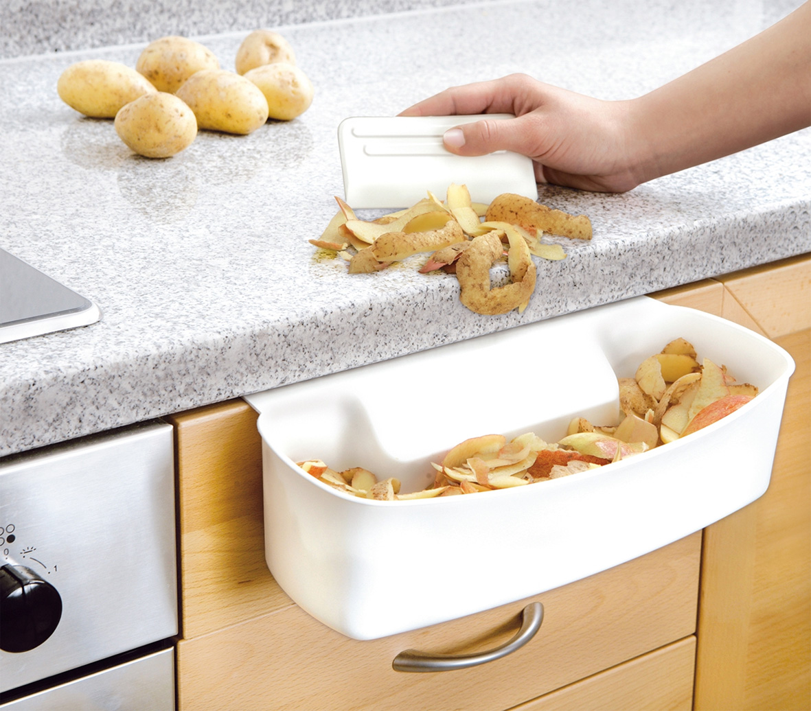 Die praktische Auffangschale ist der perfekte Abfallsammler für jede Küche: einfach an der Küchenschublade oder dem Unterschank einhängen und die Abfälle mit dem dazugehörigen Spachtel in die Auffangschale schieben. Die Auffangschale kann zudem als Einhängebox für unterschiedlichste Kleinteile genutzt werden.