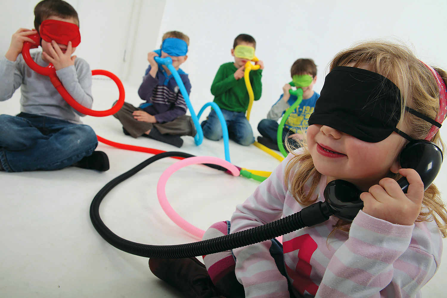 Inhalt: 6 blickdichte Masken in 6 verschiedenen Farben, Gummiband mit Klettverschluss (21 cm lang)