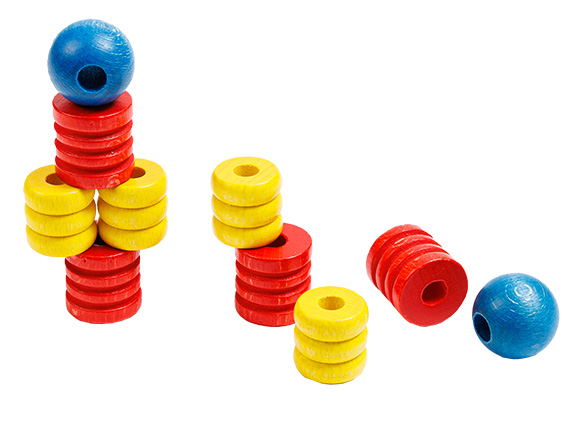 ca. 1 kg, (in verschiedenen Formen sortiert, zum Beispiel: Kugel Ø 4 cm, Fädelloch 0,8 cm, Walze 3,2 cm, Fädelloch 1,0 cm)