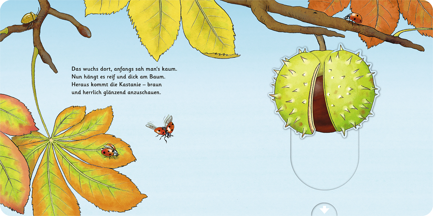 Dieses Buch mit naturalistischen Bildern und außergewöhnlichen Effekten gibt einen faszinierenden Einblick in die Natur. Innovative Schieber, Drehscheiben und Klappen zeigen die Entwicklung der Kastanie und laden zum Spielen und Entdecken ein.