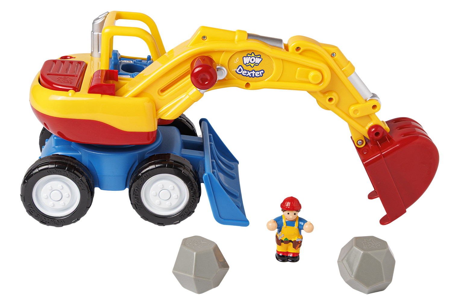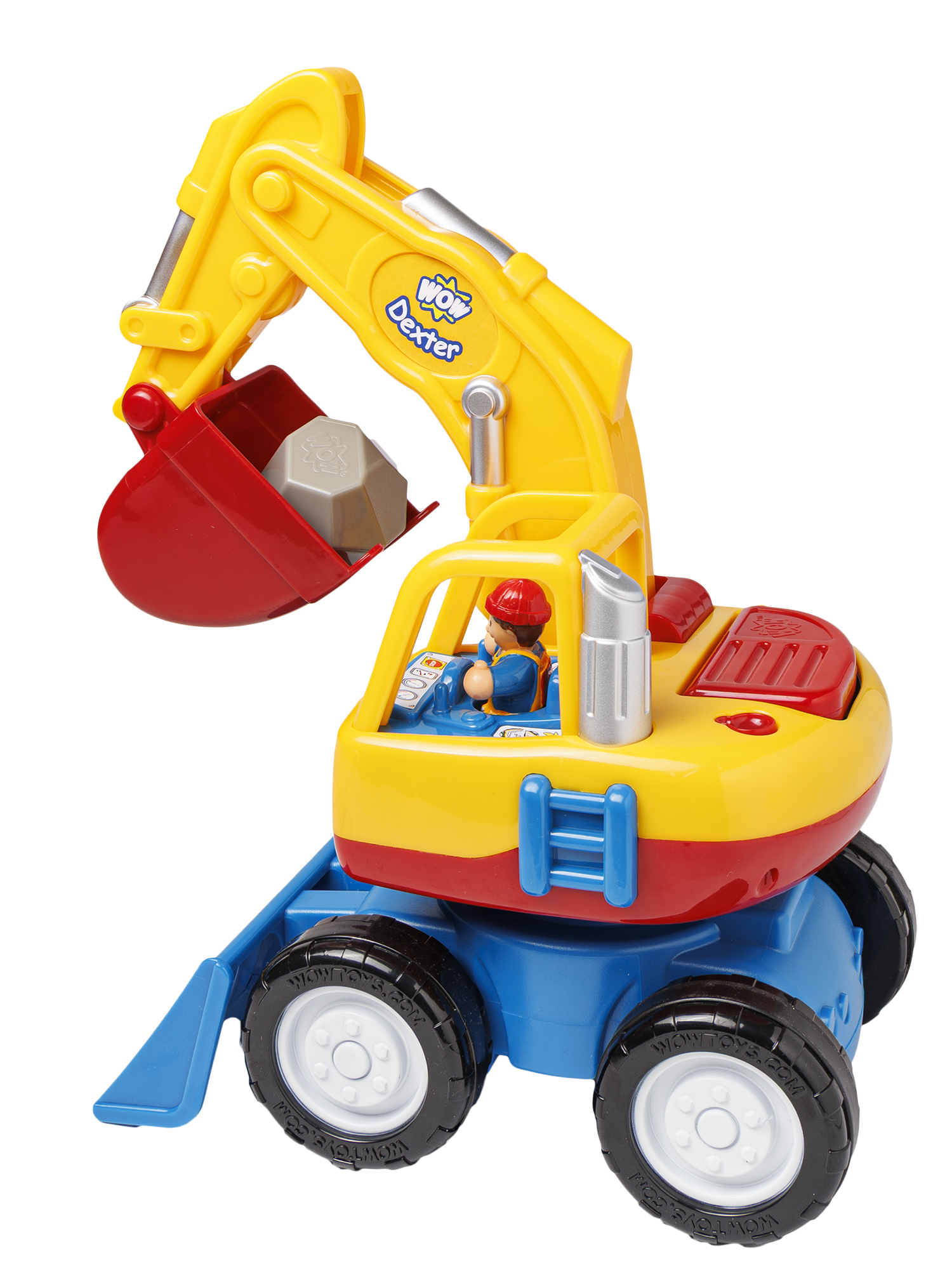 Der mechanische Arm von Dexter hat die ideale Größe für kleine Kinderhände und lässt sich über den Hebel leicht bedienen. So können Kinder Felsbrocken und andere Baustellenmaterialien bewegen und spielerisch technische Zusammenhänge erkunden. Durch Druck auf das Fahrzeug startet der leistungsstarke Push-&-Go-Motor, der Dexter selbstständig weiterfahren lässt. Ein weiterer Druck auf den WOW-Knopf öffnet ein geheimes Motorfach mit Werkzeugen für den nächsten Einsatz. Hergestellt ohne PVC, ohne giftige Farben und BPA-frei – für sicheres Spielen!