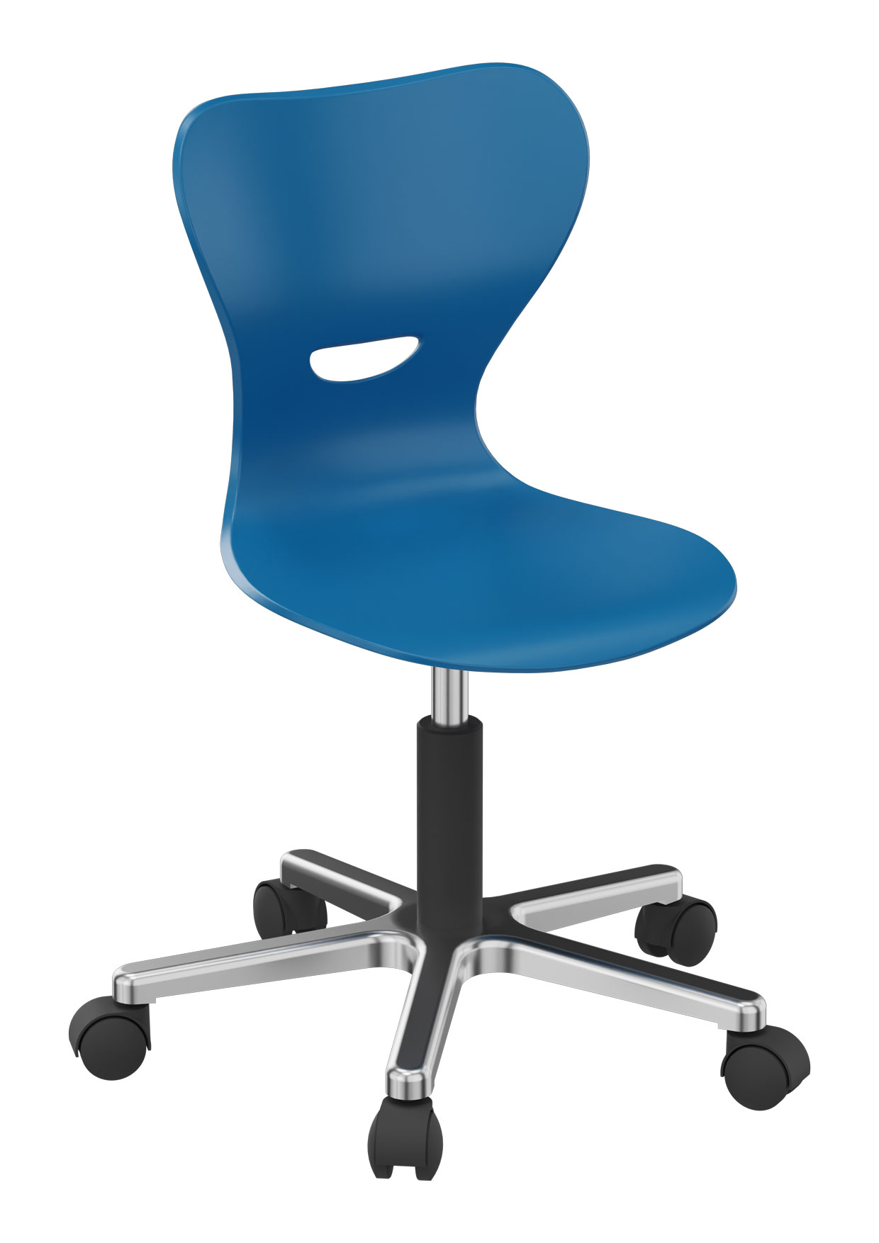Höhenverstellbarer Drehstuhl auf Rollen mit einer ergonomisch geformten Sitzschale, welche durch die 3D Wipptechnik unterschiedliche Sitzhaltungen unterstützt und die Wirbelsäule entlastet. Für einen langjährigen Einsatz in der Schule. GS geprüft nach DIN EN 1729 und DIN EN 16139 (Zert. Nr.: 3510.02817.Z01 Sponeta GmbH) Tüv Thüringen.