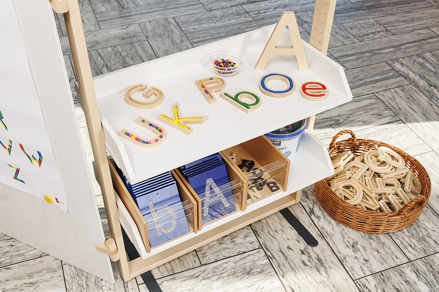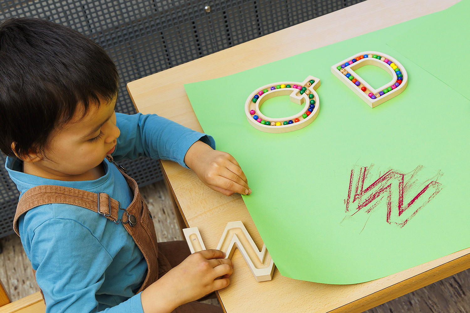 Mit diesem Material erfahren Kinder Buchstaben mit allen Sinnen. Sie können sie abtasten, erfühlen, untersuchen und mit verschiedensten Gegenständen füllen: z.B mit Pfeifenputzern, Erbsen, Murmeln. So lernen die Kinder spielerisch das Alphabet kennen.