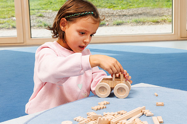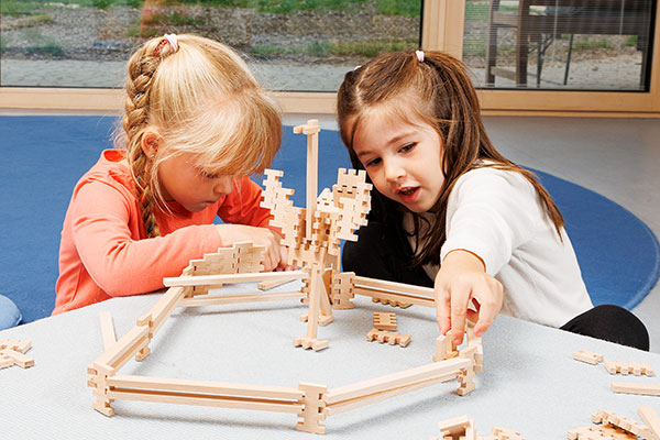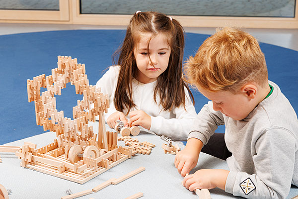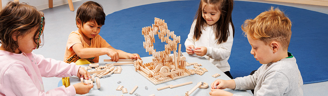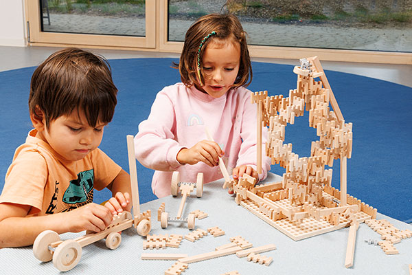 Weil jedes Verbinden ein Verstehen ist. Wenn Kinder einen Bogen schließen, eine Brücke stabilisieren oder eine Figur fixieren, begreifen sie mit den Händen, was Worte erst später erklären: Ursache und Wirkung, Stabilität und Veränderung, „Was hält? Was kippt? Was braucht’s noch?“ Genau dieses spielerische Denken macht den Steckbaustein seit 1935 so zeitlos – und seine Weiterentwicklung so sinnvoll.