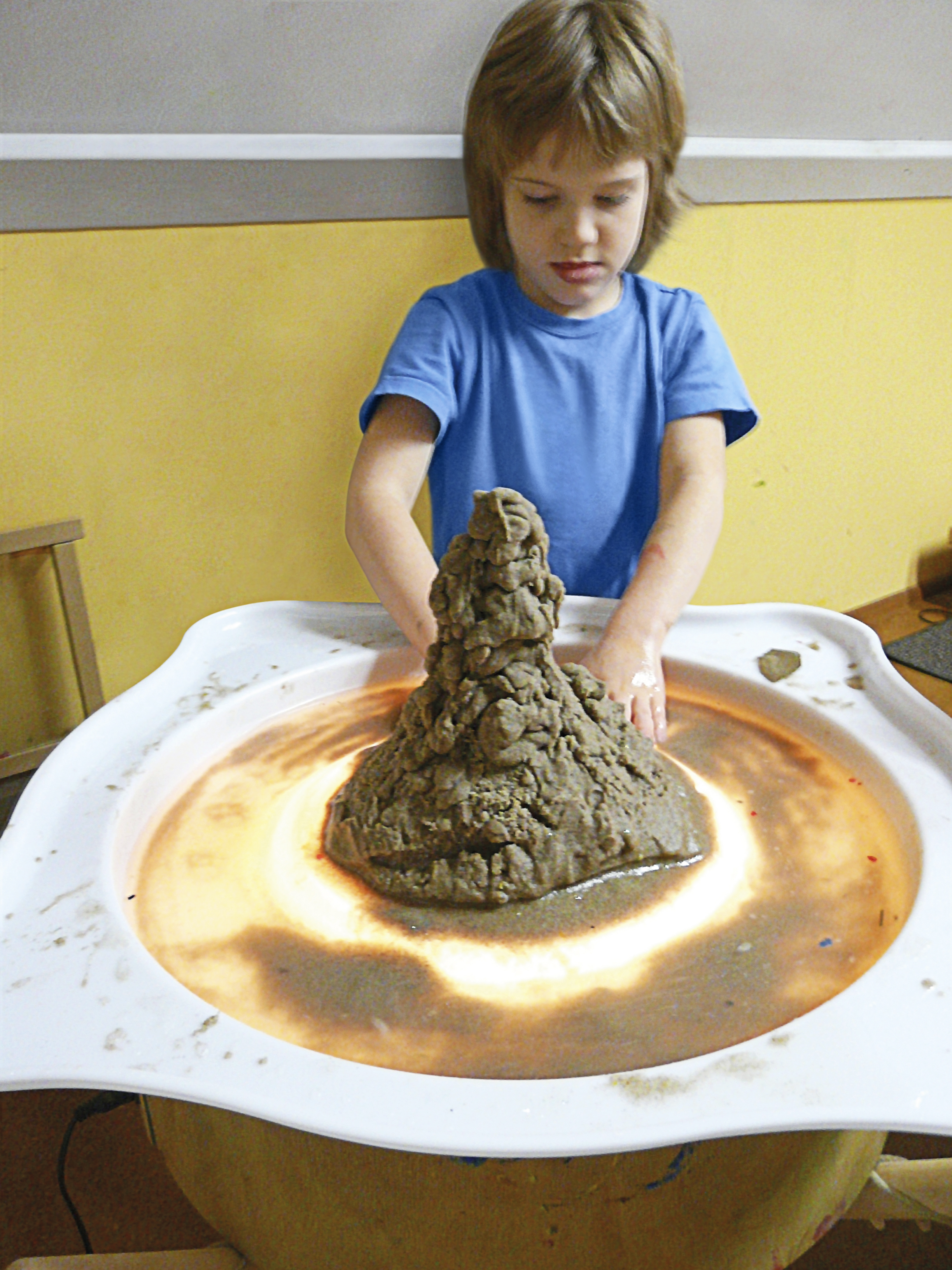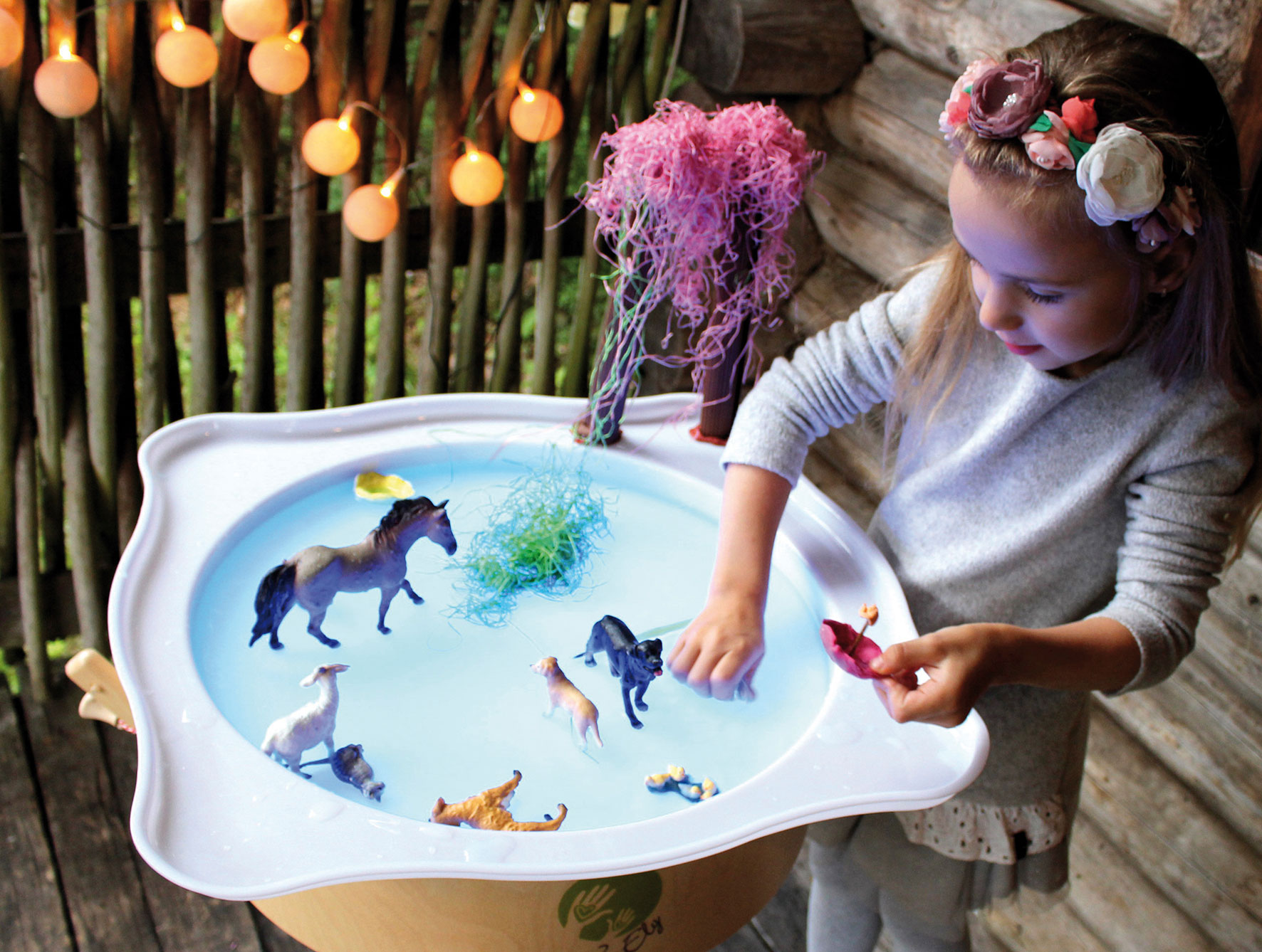 Die transluzente Schale für den Leuchtkübel (703896 - bitte separat bestellen). Als Indoor-Matschtisch, für Experimente mit Wasser, Farben oder Sand ist die Schale, mit Rand als Ablagefläche, toll geeignet.