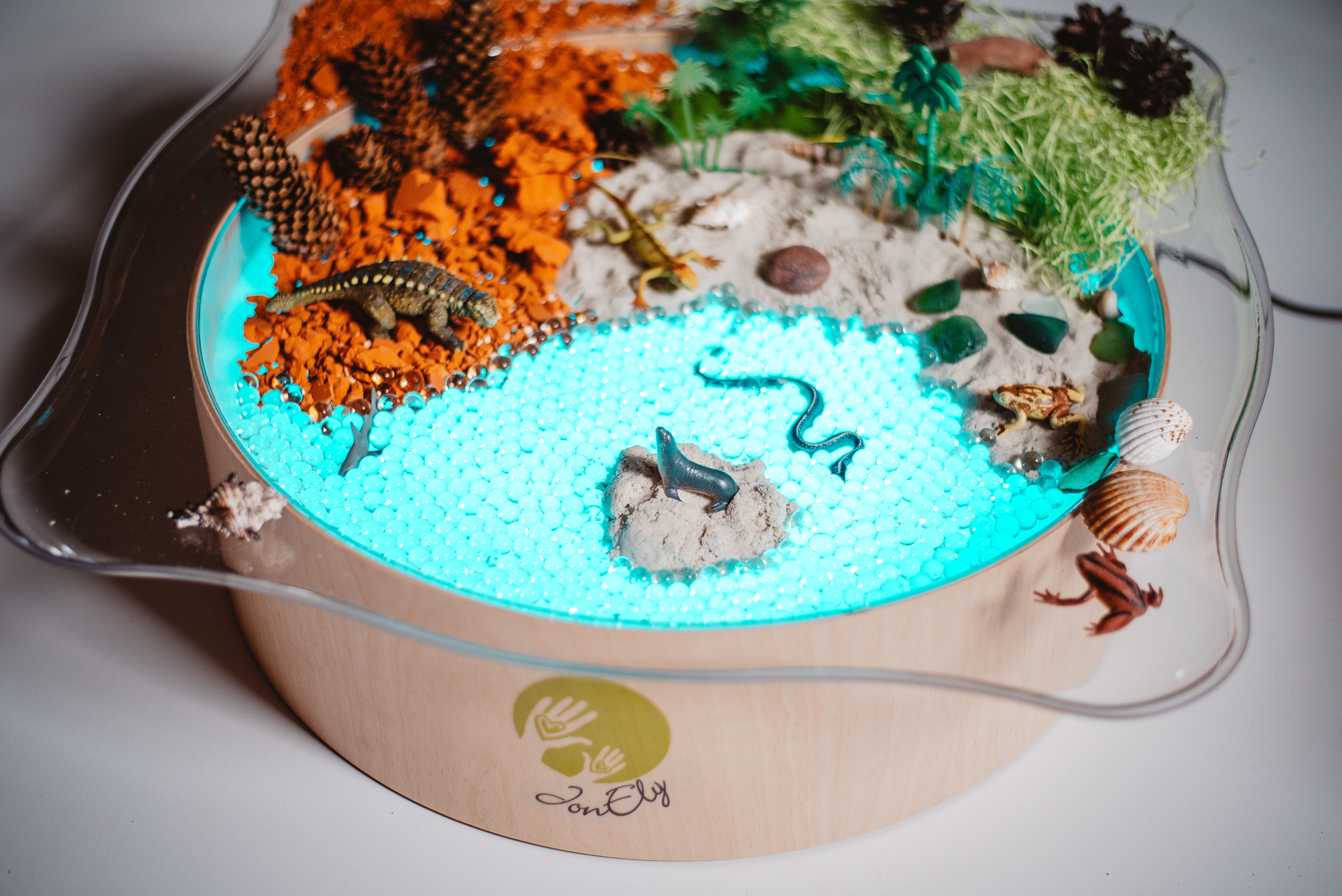 Die transparente Faszinationsschale passt optimal auf den Leuchtkübel (nicht inkl., bitte separat bestellen). Als Indoor-Matschtisch, für Experimente mit Wasser, Farben oder Sand ist die 4 cm tiefe Schale mit Rand als Ablagefläche toll geeignet und bietet vielfältige Möglichkeiten der Sinneserfahrung.
