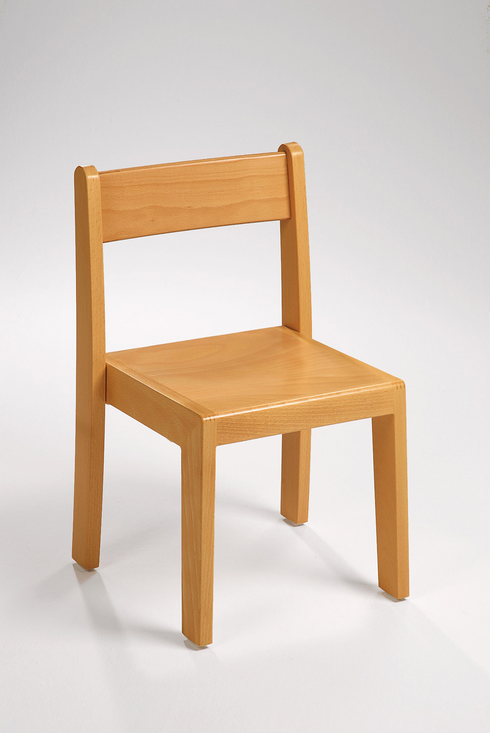 Klassischer formschöner Stuhl mit durchgehender Sitzfläche. Sitzfläche mit Sitzvertiefung. Sitzfläche und Rückenlehne sind ergonomisch aufeinander abgestimmt und garantieren hohen Sitzkomfort. Durch die Schrägstellung der Beine steht der Stuhl kippsicherer, die gerundete Sitz-Vorderkante verhindert Blutstauung.