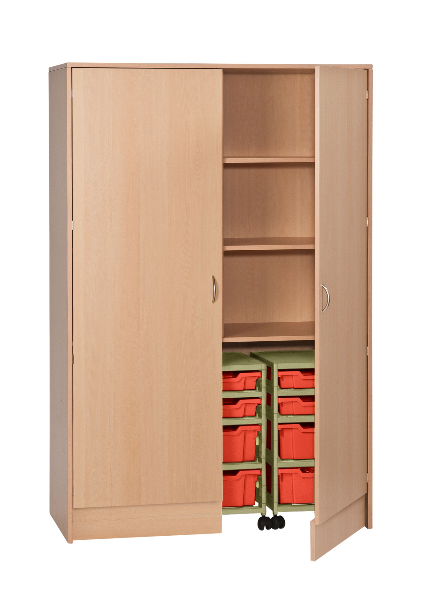1 Garagenschrank, (2 Türen, passend für 3 Türme (Kunststoffkasten Turm 3), darüber 6 Fächer, die oberen 4 Fachböden verstellbar)