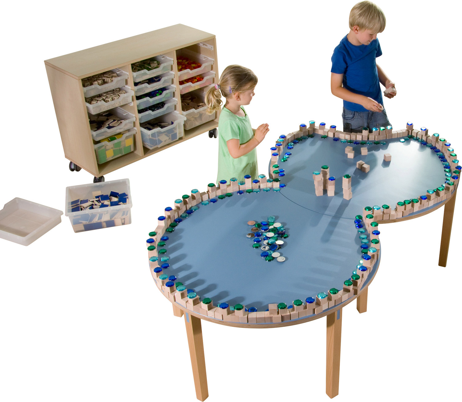 Gleiches Material in großer Menge hat bei Jung und Alt einen hohen Aufforderungscharakter und regt zum Legen, Bauen und Konstruieren an. Neben dem taktilen Reiz entsteht durch solche ungeordneten Ordnungen ein innerer und äußerer Dialog der Fantasie und des Strukturierens. Wenn Kindern von einem Material eine große Menge zur Verfügung steht, fangen sie an, Muster zu legen, zu strukturieren und symmetrische Figuren zu konstruieren. Dies gelingt auch ohne Impulse eines Erwachsenen. Das Materialangebot lädt in seiner Fülle dazu ein, Ideen abzubilden, zu variieren und gebaute Objekte zu berechnen.