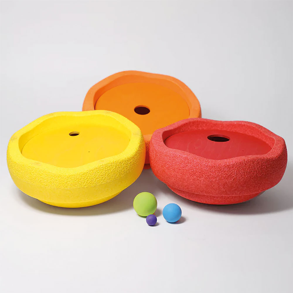 Farblich abgestimmte Scheiben auf die Stapelstein® Farben. Sie können nach Belieben kombiniert werden. Eine Scheibe in einen Stapelstein® Original einlegen und dann einfach drauf los kullern! Neben dem Kullerspiel eignen sich die Scheiben auch zum Bauen und werden zu Inseln oder Zwischenebenen bei Gebäuden. Die kleinen Zusatzlöcher können im fantasievollen Spiel mit Halmen und Blümchen geschmückt werden.