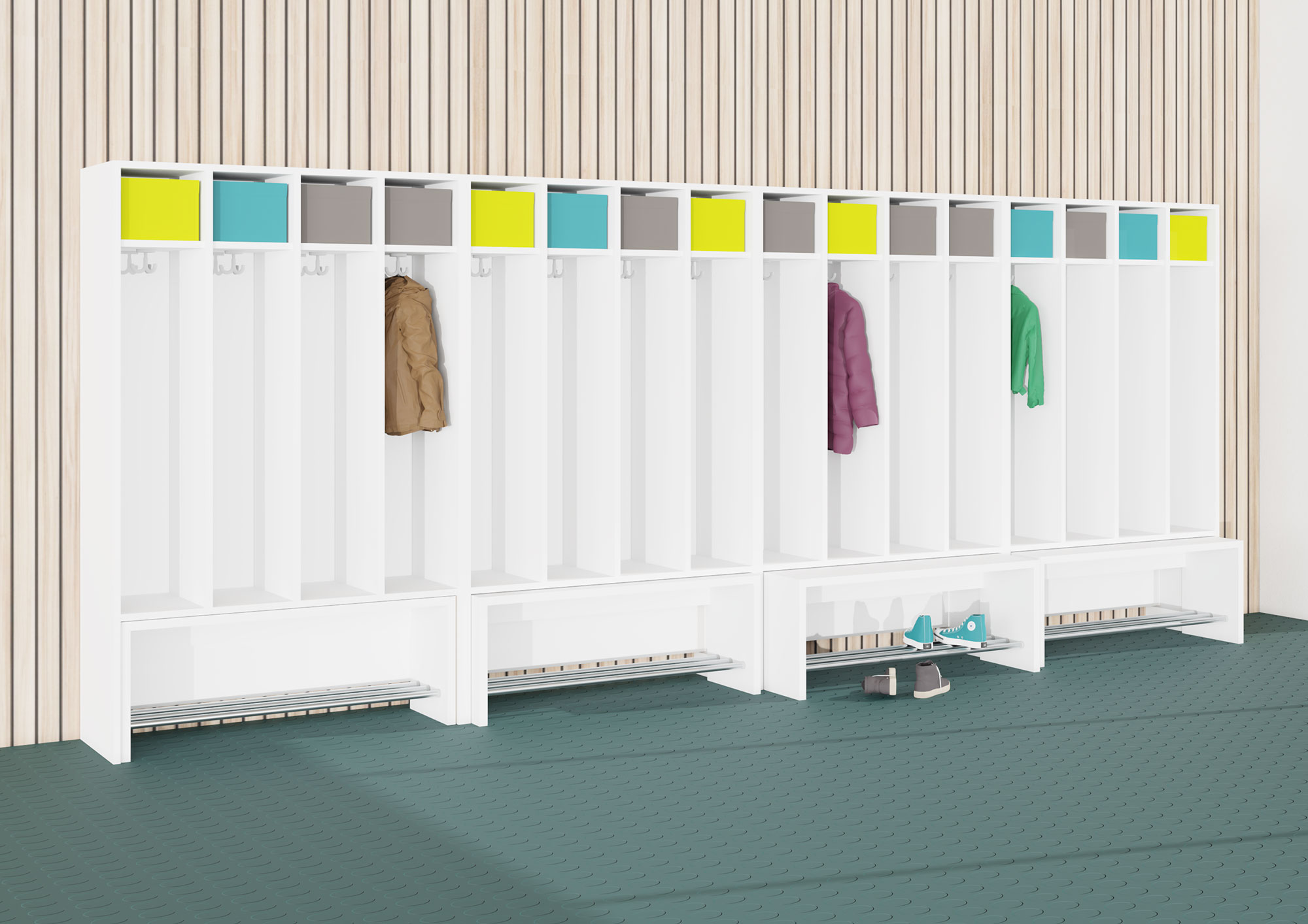 Kinderlachen, freudiges Begrüßen, entspanntes Ankommen in schöner Atmosphäre, dies gelingt mit unserem neuen Garderobensystem hej.