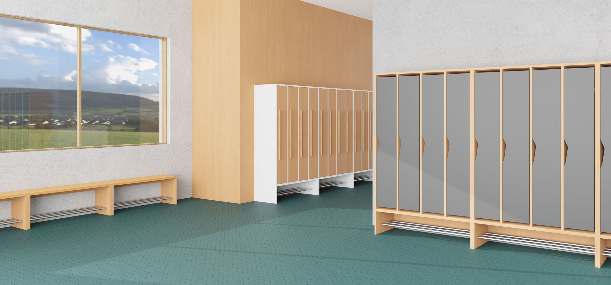 Kinderlachen, freudiges Begrüßen, entspanntes Ankommen in schöner Atmosphäre, dies gelingt mit unserem neuen Garderobensystem hej.