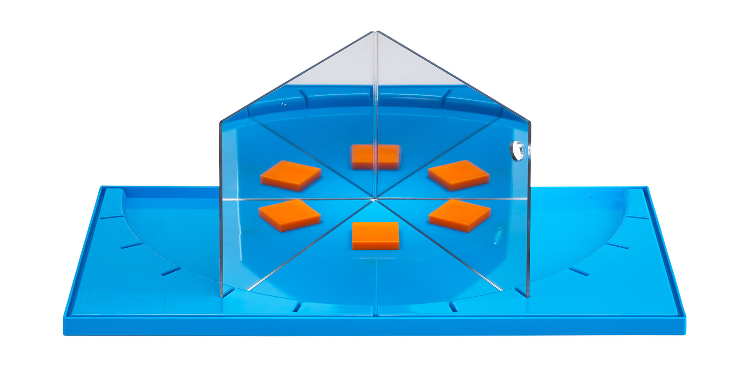 Mit Junior Geoland lassen sich auf raffinierte Art und Weise Muster und geometrische Formen darstellen. Das Set beinhaltet Spiegel, die auf einer Platte befestigt werden und verschiedenste Materialien. Mit Hilfe der Spiegel müssen die auf den Karten abgebildeten Muster und Formen dargestellt werden. Mit den beiliegenden Materialien können auch eigene Muster gelegt werden.