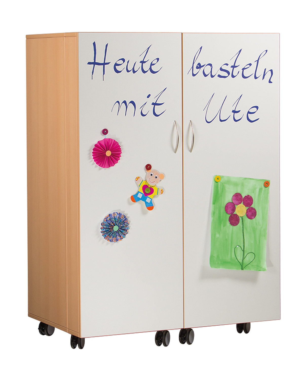 Der Klapp-Materialschrank ist mit Ablagfächern für Papier und Kartonagen bis zu einer Größe von 50,5 x 67,0 cm ausgestattet.