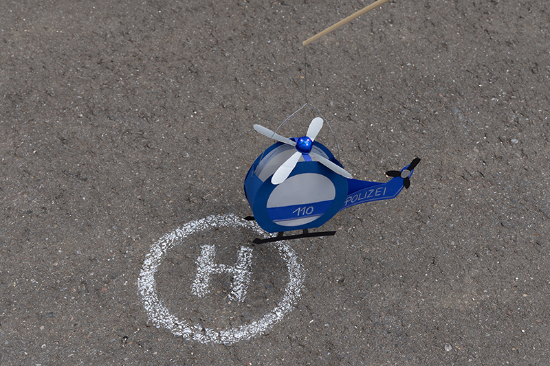 - Klebe ein kleines blaues LED-Licht oben auf den Propeller als Blaulicht.