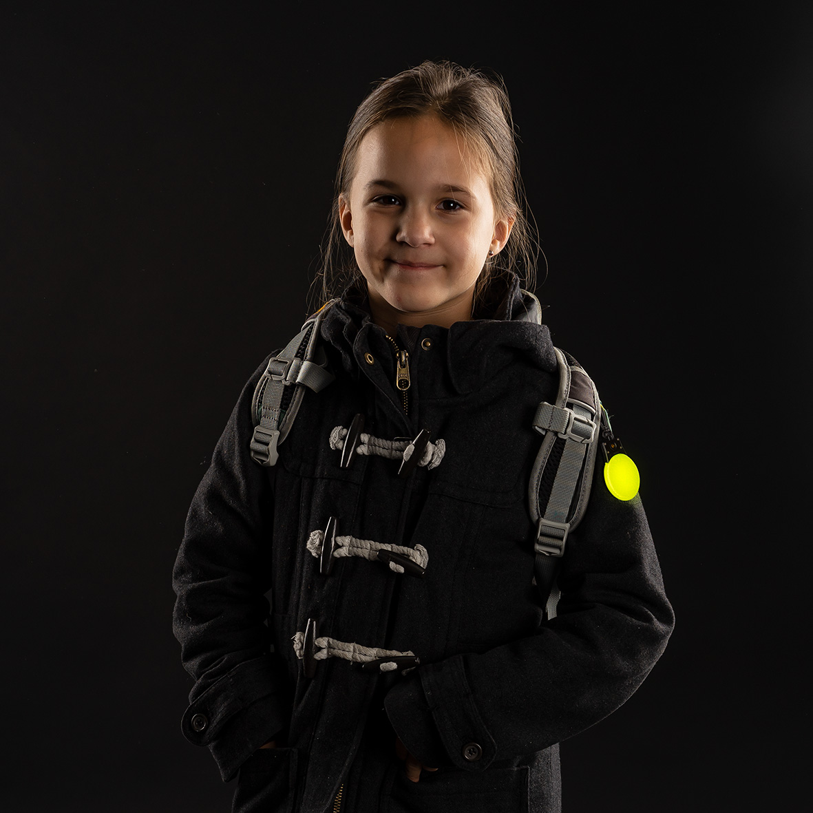 Mit Karabiner einhängbares Sicherheitslicht für Rucksack oder Jackenreißverschluss
