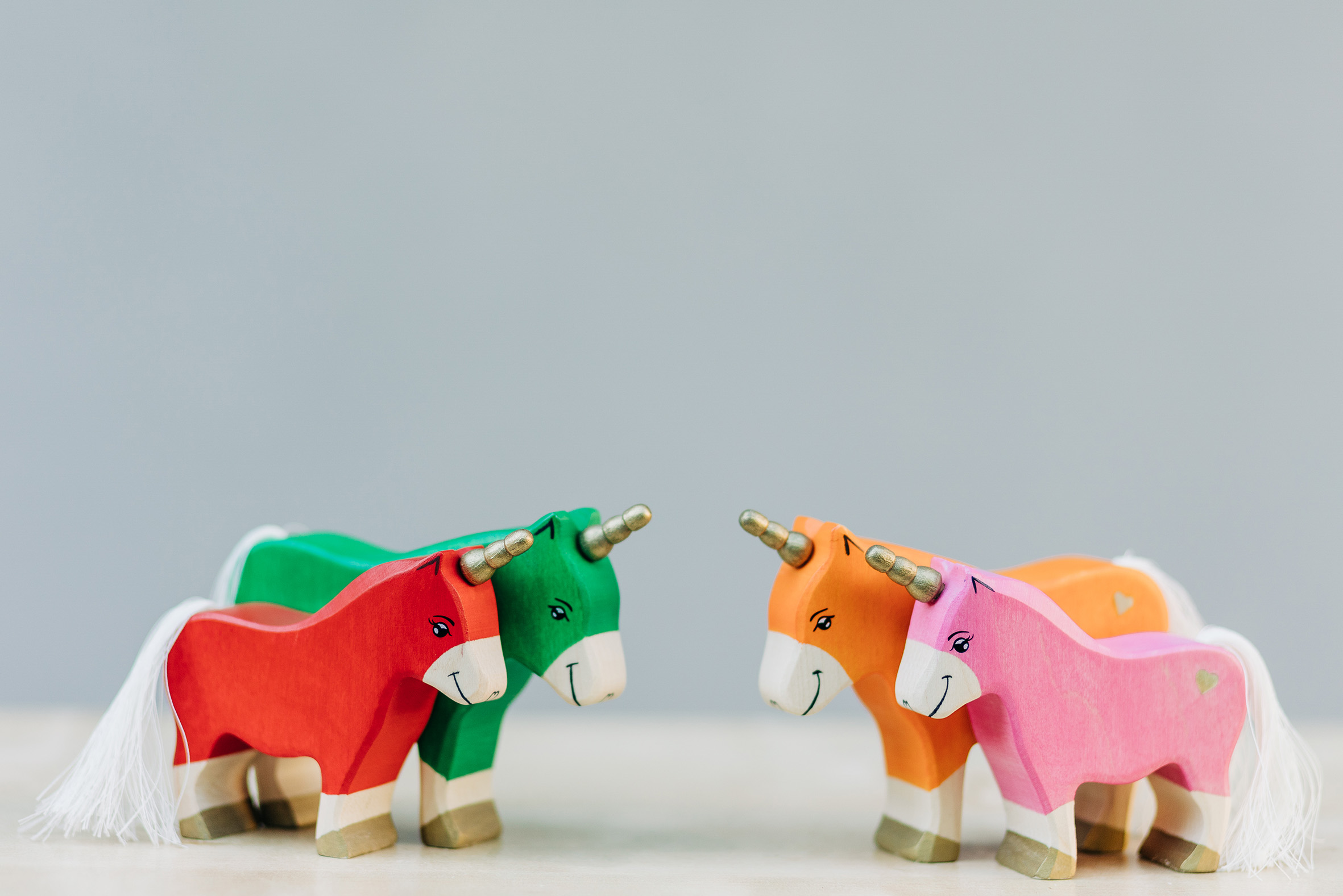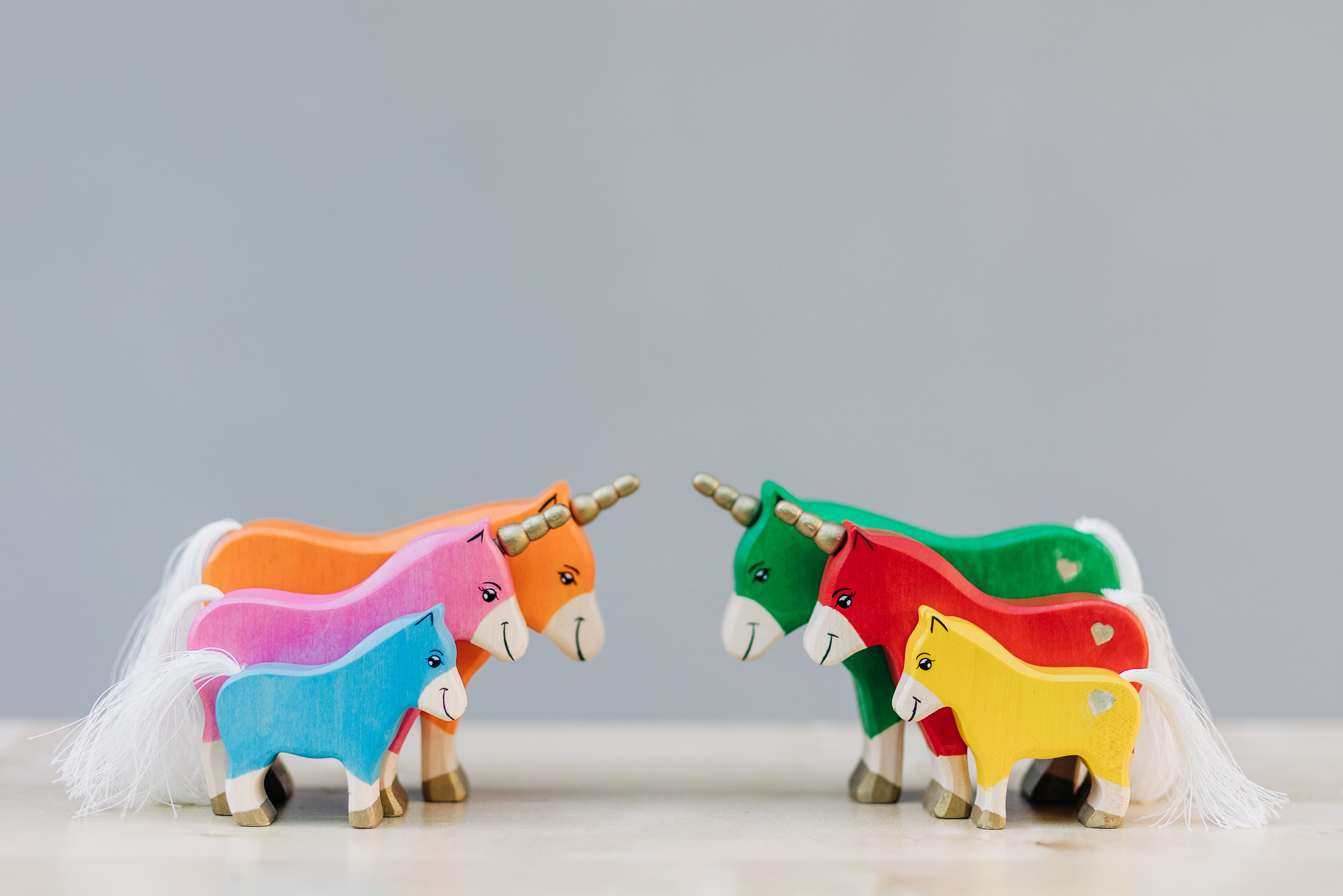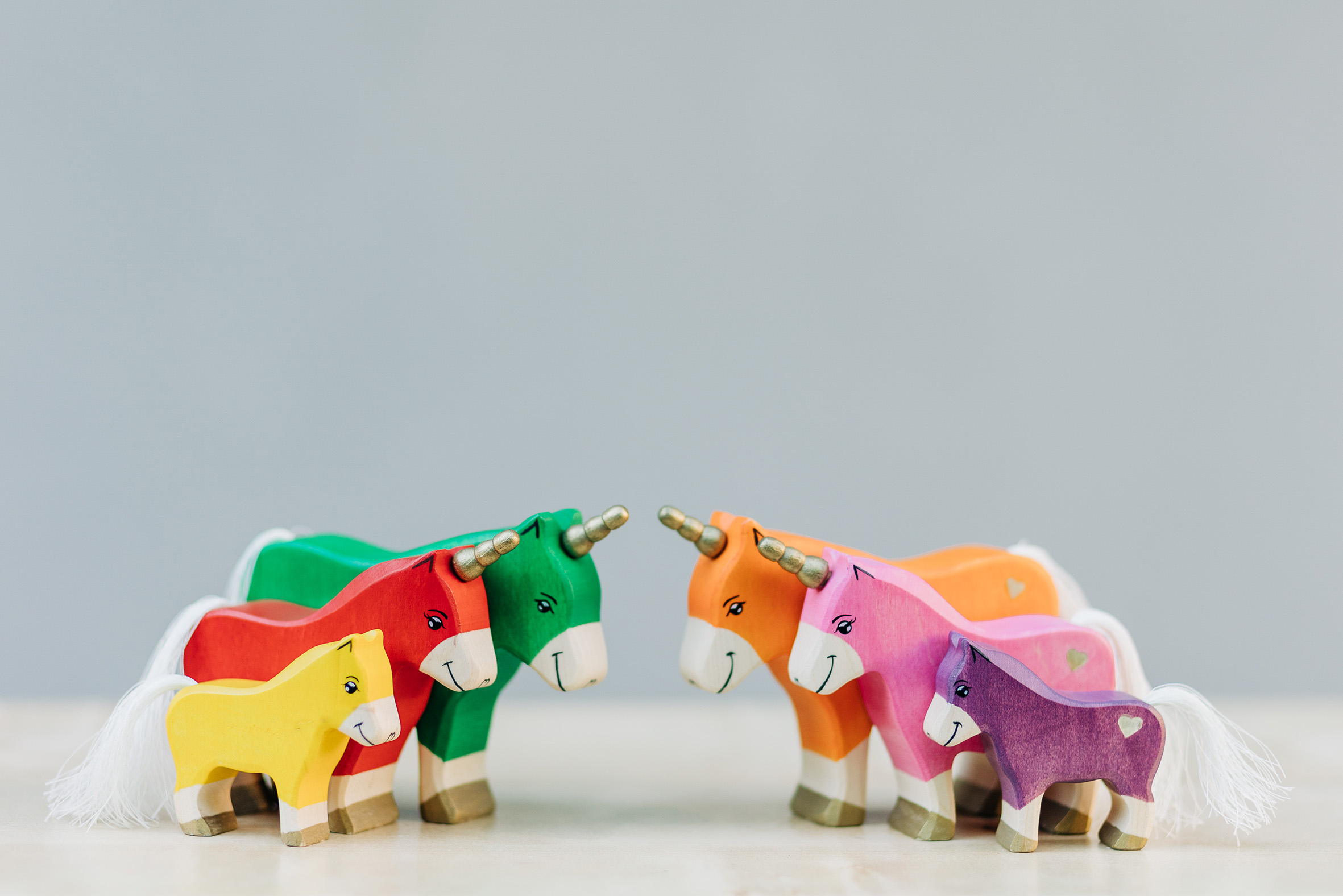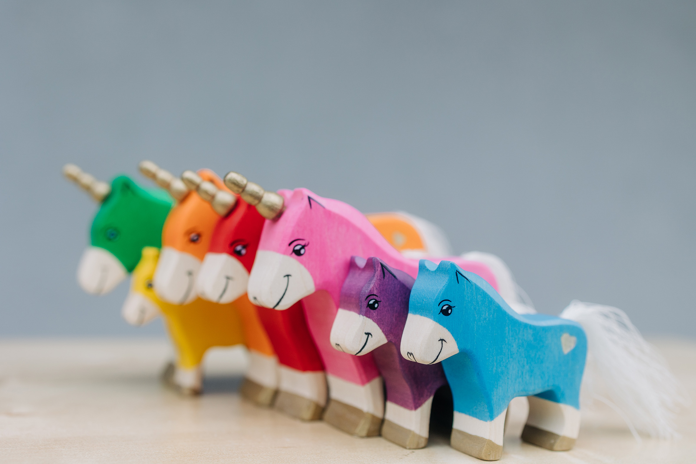 Willkommen in einer Welt voller Farben, Magie und unendlicher Fantasie! Unsere liebevoll handgefertigten Einhörner aus Holz laden Kinder dazu ein, in eine bunte Traumwelt einzutauchen, funkelnde Edelsteine und geheimnisvolle Abenteuer auf sie warten. Das stolze blaue Einhorn bewacht den Regenbogenpalast, während das goldene Einhorn neugierig durch die farbenfrohe Landschaft galoppiert. Und das zarte rosafarbene Einhorn bringt mit seiner Sanftheit eine Prise Zauber und Freundlichkeit in jede Geschichte. Begleitet werden die Fabelwesen von leuchtenden Holzbausteinen, die wie funkelnde Regenbogenkristalle wirken. Ob Türme, Regenbogenbrücken oder magische Höhlen – die bunten Elemente lassen sich immer wieder neu kombinieren und eröffnen unendliche Spielmöglichkeiten. Lass die Magie einziehen – entdecke jetzt unsere zauberhafte Einhorn-Welt!