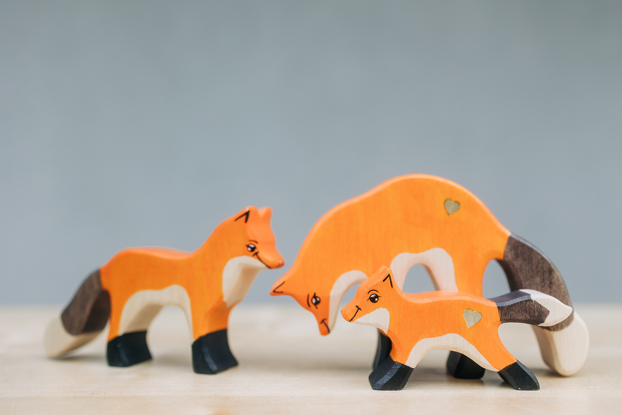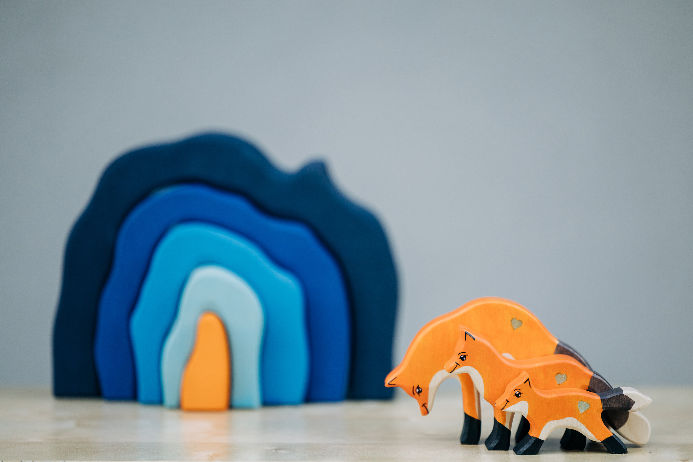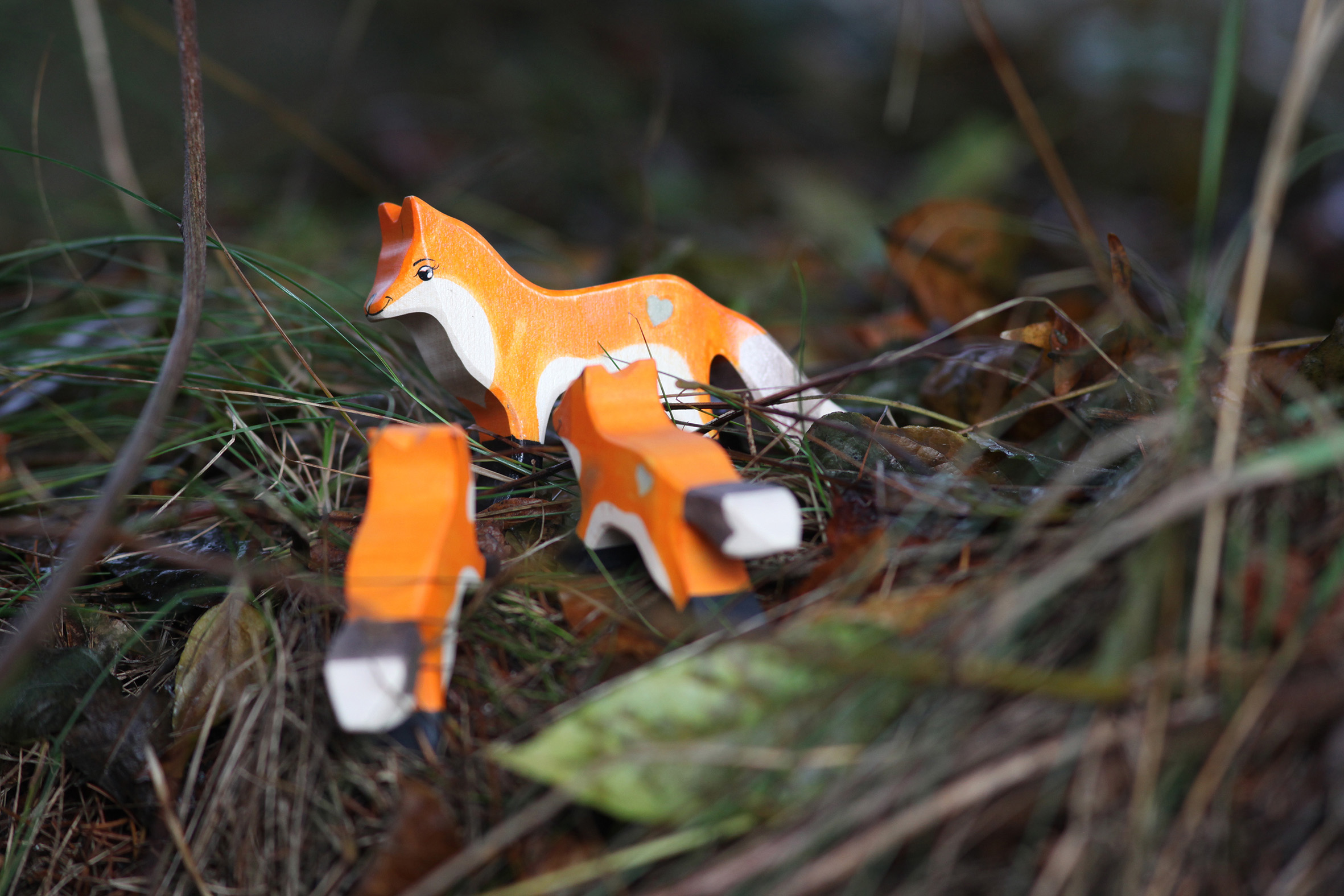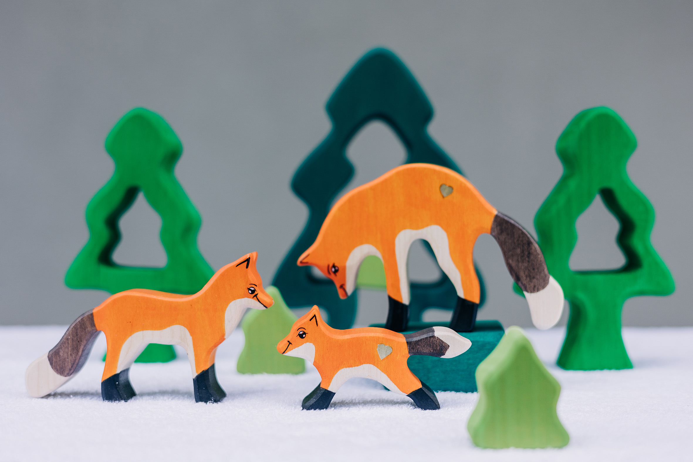 Zwischen goldenen Blättern und raschelndem Moos streifen die leuchtend orangefarbenen Füchse durch den Wald, immer auf der Suche nach einem neuen Abenteuer. In der Ferne grunzt die Wildschwein-Familie – stark, mutig und doch so sanft, wie nur eine Familie sein kann. Gemeinsam erkunden sie die bunte Landschaft aus handgefertigten Holzbausteinen, die sich mal als geheimnisvolle Höhle, mal als herbstliche Waldlichtung zeigen. Jedes einzelne Element – von der sanft geschwungenen Form bis zur intensiven Farbnuance – wird mit viel Liebe aus nachhaltigem Holz gefertigt und mit kindersicheren Farben bemalt. So entsteht nicht nur ein langlebiges Spielzeug, sondern ein Stück Natur, das Generationen überdauert.