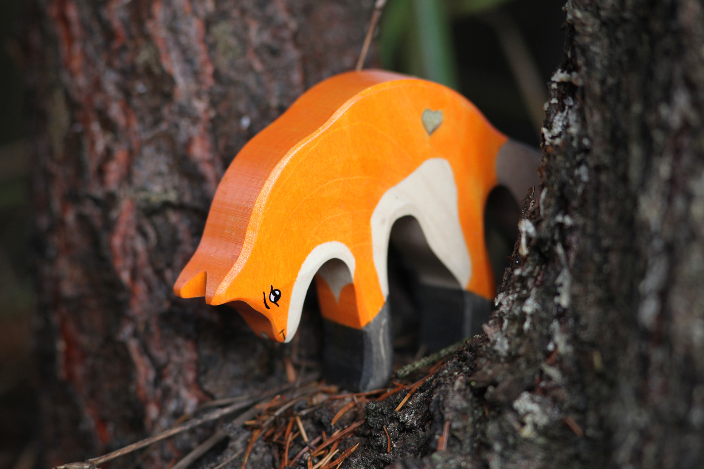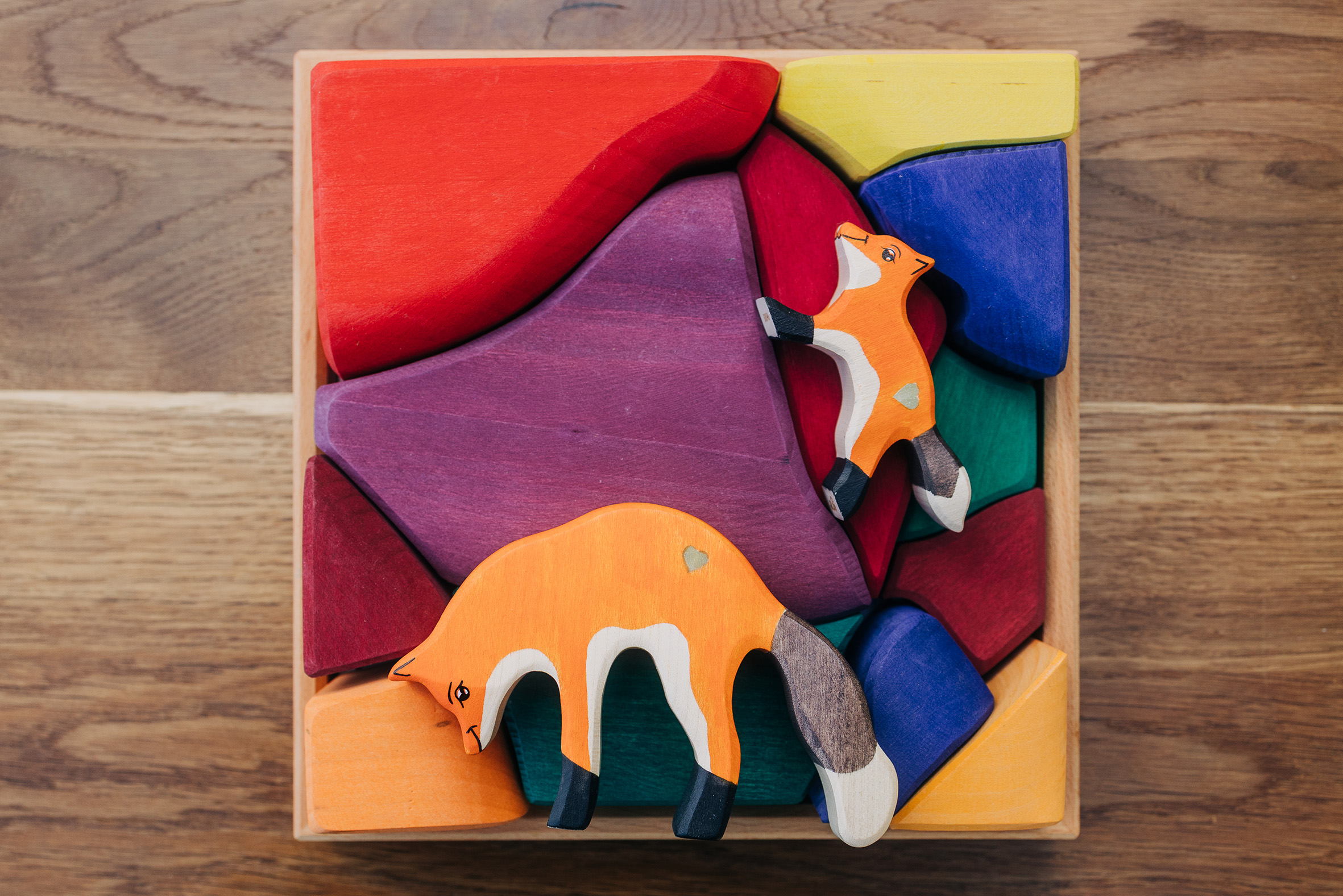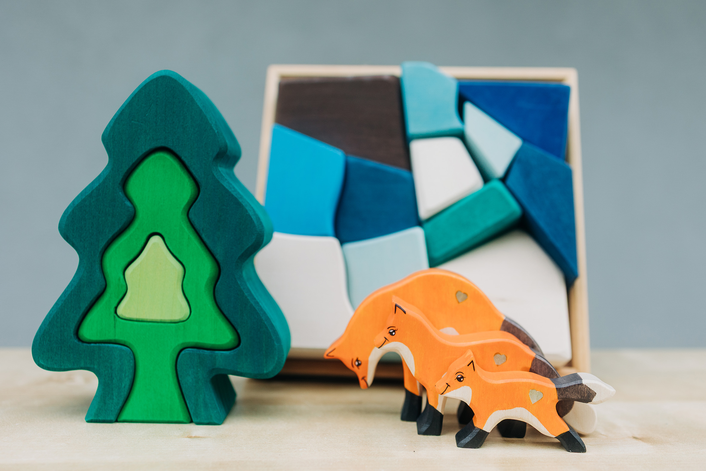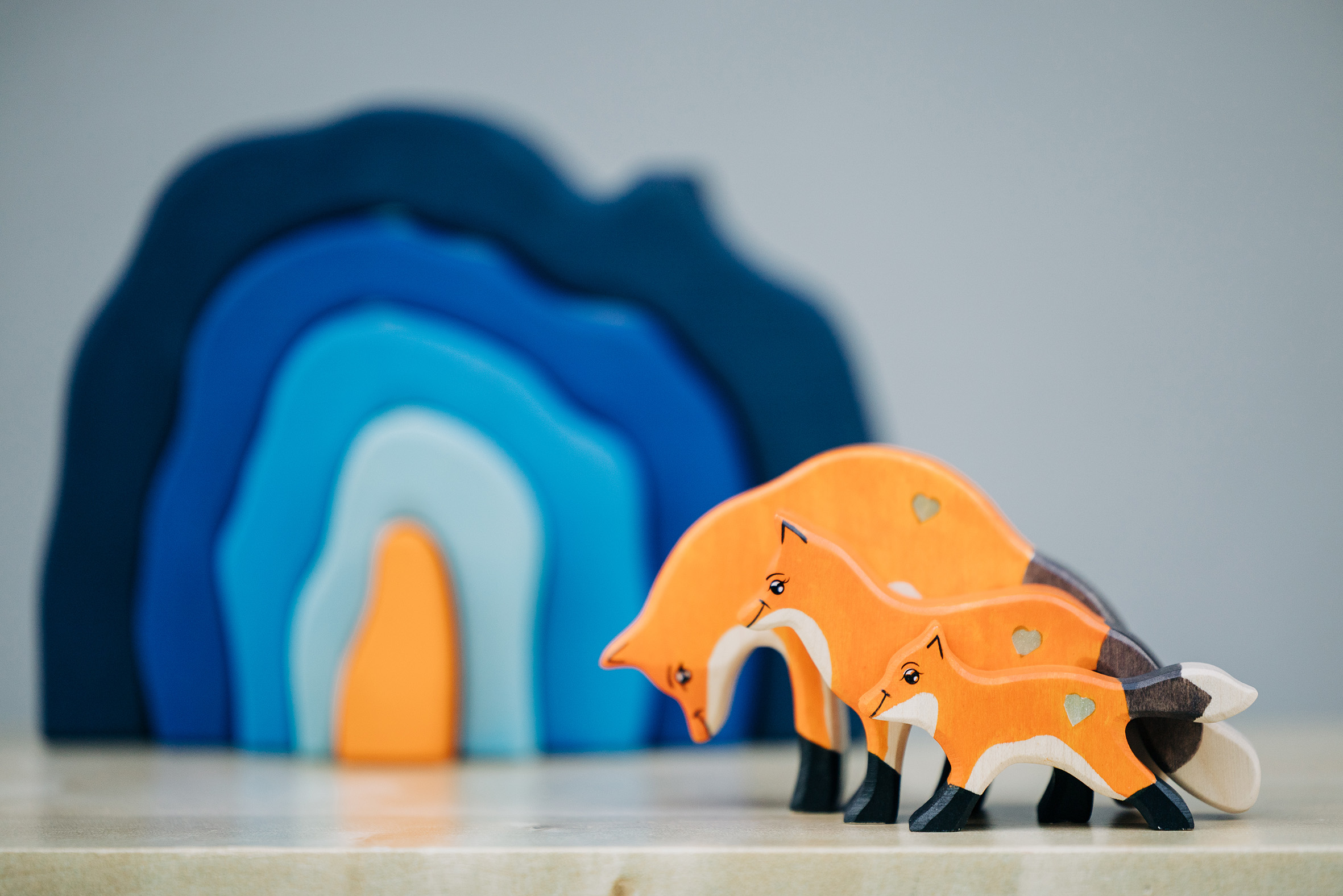 Zwischen goldenen Blättern und raschelndem Moos streifen die leuchtend orangefarbenen Füchse durch den Wald, immer auf der Suche nach einem neuen Abenteuer. In der Ferne grunzt die Wildschwein-Familie – stark, mutig und doch so sanft, wie nur eine Familie sein kann. Gemeinsam erkunden sie die bunte Landschaft aus handgefertigten Holzbausteinen, die sich mal als geheimnisvolle Höhle, mal als herbstliche Waldlichtung zeigen. Jedes einzelne Element – von der sanft geschwungenen Form bis zur intensiven Farbnuance – wird mit viel Liebe aus nachhaltigem Holz gefertigt und mit kindersicheren Farben bemalt. So entsteht nicht nur ein langlebiges Spielzeug, sondern ein Stück Natur, das Generationen überdauert.