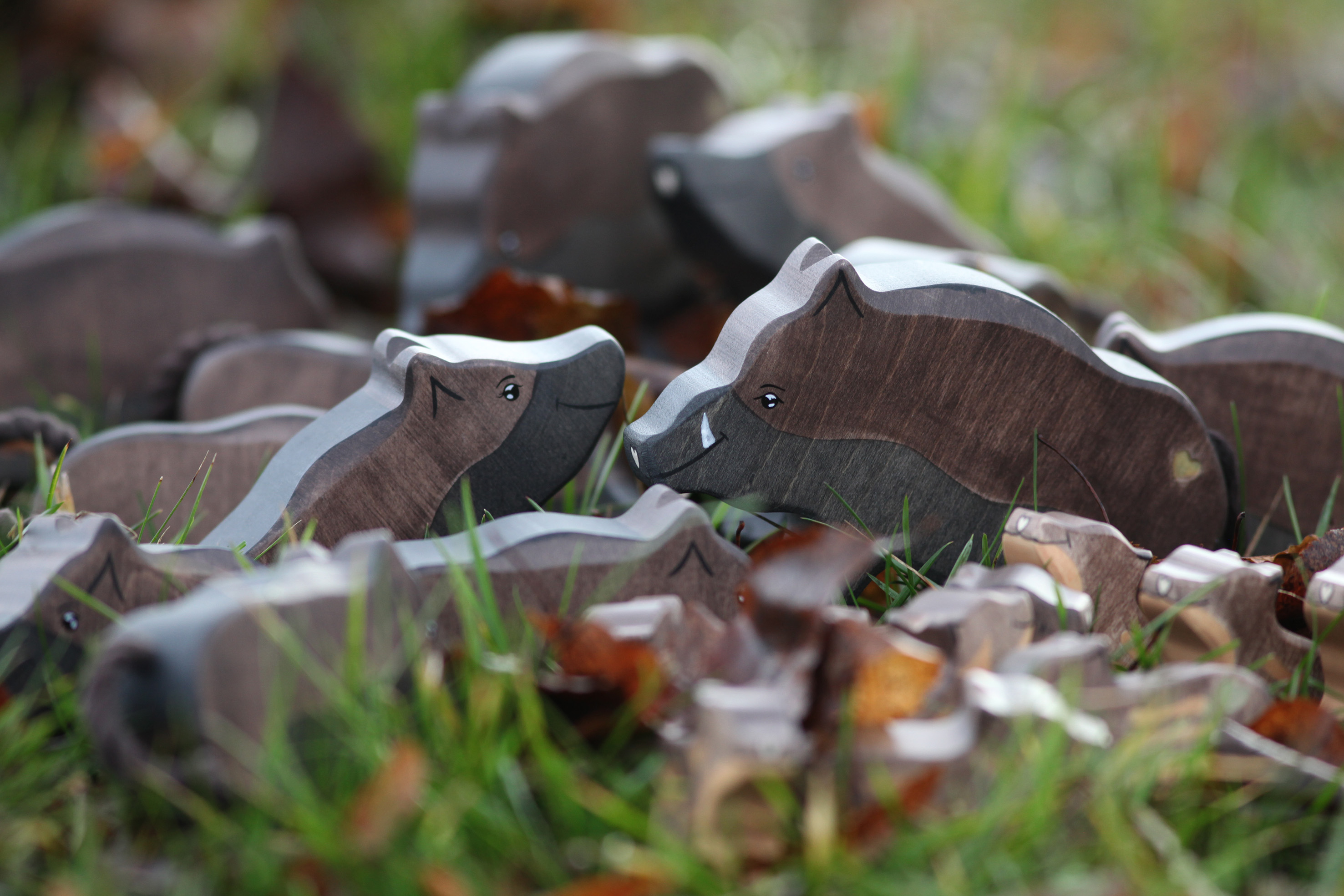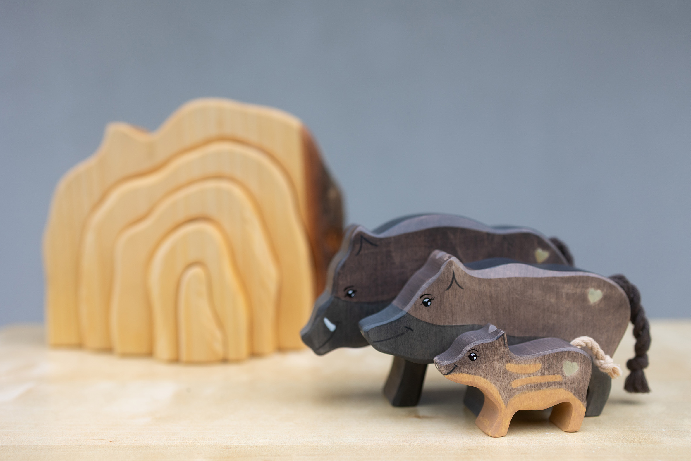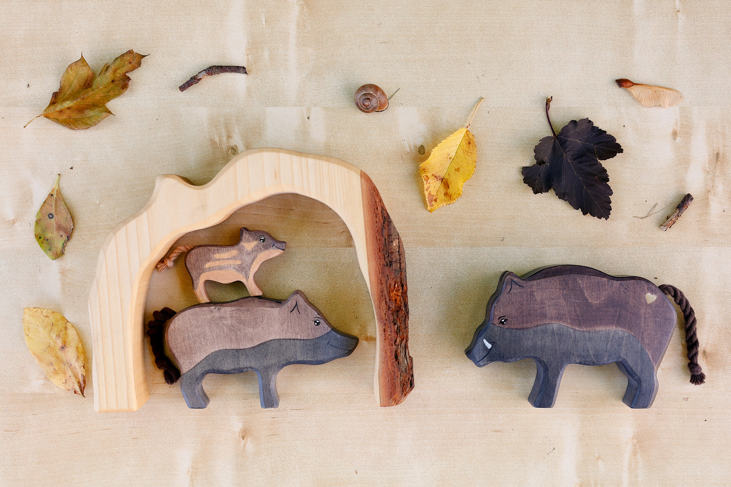 Zwischen goldenen Blättern und raschelndem Moos streifen die leuchtend orangefarbenen Füchse durch den Wald, immer auf der Suche nach einem neuen Abenteuer. In der Ferne grunzt die Wildschwein-Familie – stark, mutig und doch so sanft, wie nur eine Familie sein kann. Gemeinsam erkunden sie die bunte Landschaft aus handgefertigten Holzbausteinen, die sich mal als geheimnisvolle Höhle, mal als herbstliche Waldlichtung zeigen. Jedes einzelne Element – von der sanft geschwungenen Form bis zur intensiven Farbnuance – wird mit viel Liebe aus nachhaltigem Holz gefertigt und mit kindersicheren Farben bemalt. So entsteht nicht nur ein langlebiges Spielzeug, sondern ein Stück Natur, das Generationen überdauert.
