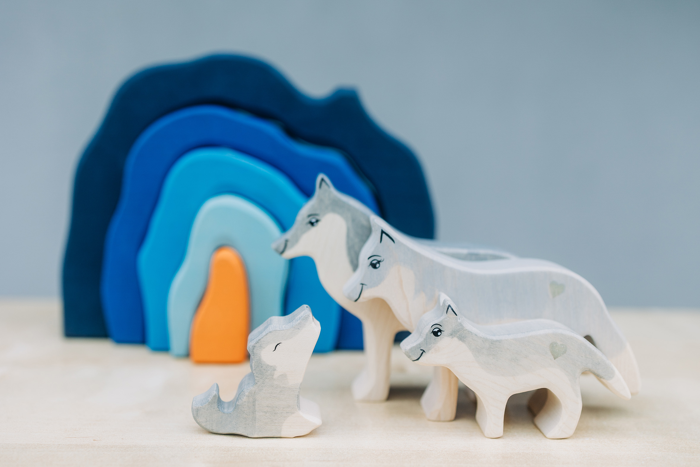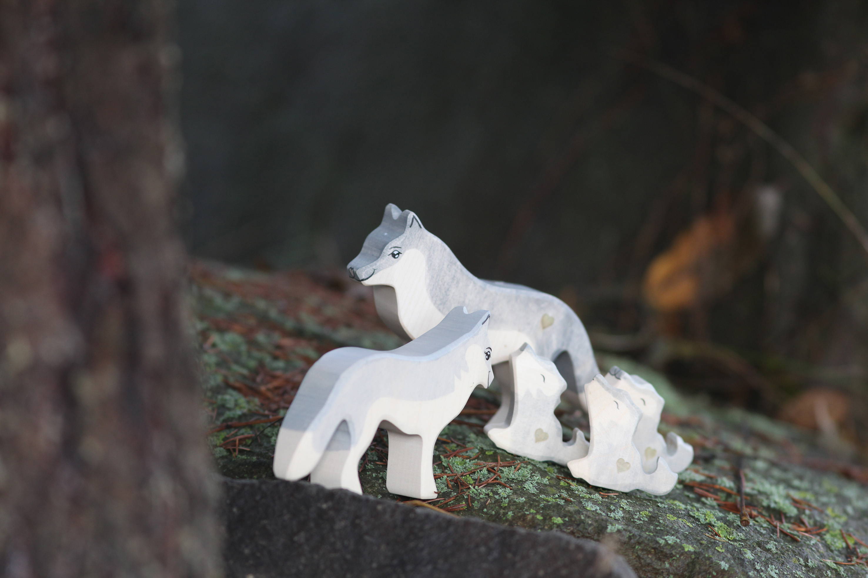 Willkommen im Reich der kleinen Abenteuer! Unsere charmanten Aufstellfiguren einer Wolfsfamilie bringen die Wildnis direkt ins Kinderzimmer – sanft, sicher und voller Fantasie. Die handgefertigten Figuren aus FSC® 100%-zertifiziertem Holz laden Kinder dazu ein, eigene Geschichten zu erfinden, spannende Expeditionen zu erleben und die Welt der Tiere spielerisch zu entdecken. Ob der kleine Wolf das Heulen übt, die Wolfseltern ihre Jungen beschützen oder gemeinsam durch Wälder streifen – jedes Spiel wird zu einem liebevollen Naturerlebnis. Die angenehm glatte Oberfläche, die weichen Formen und die stabile Verarbeitung machen sie zum idealen Begleiter für kleine Hände und große Fantasie.