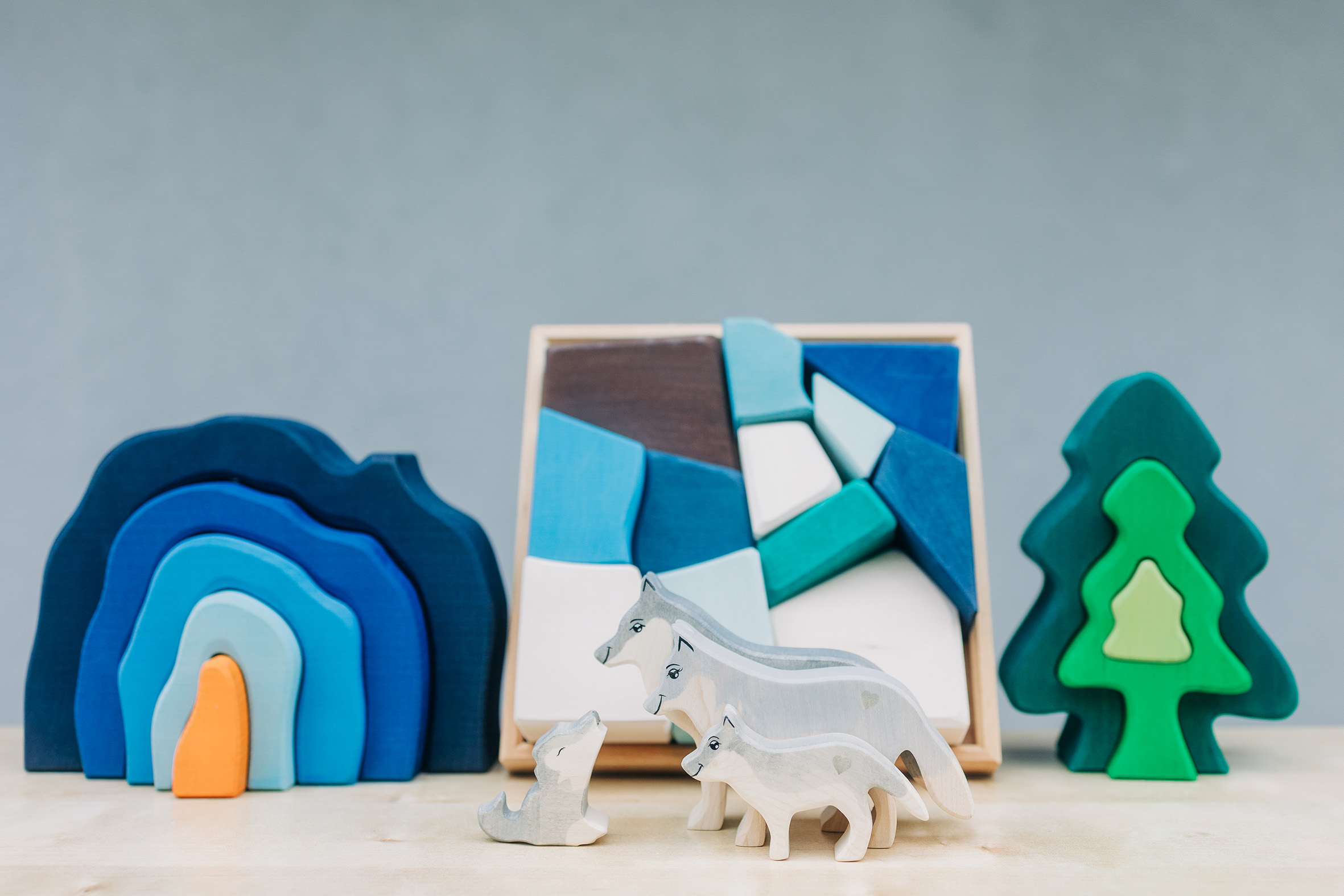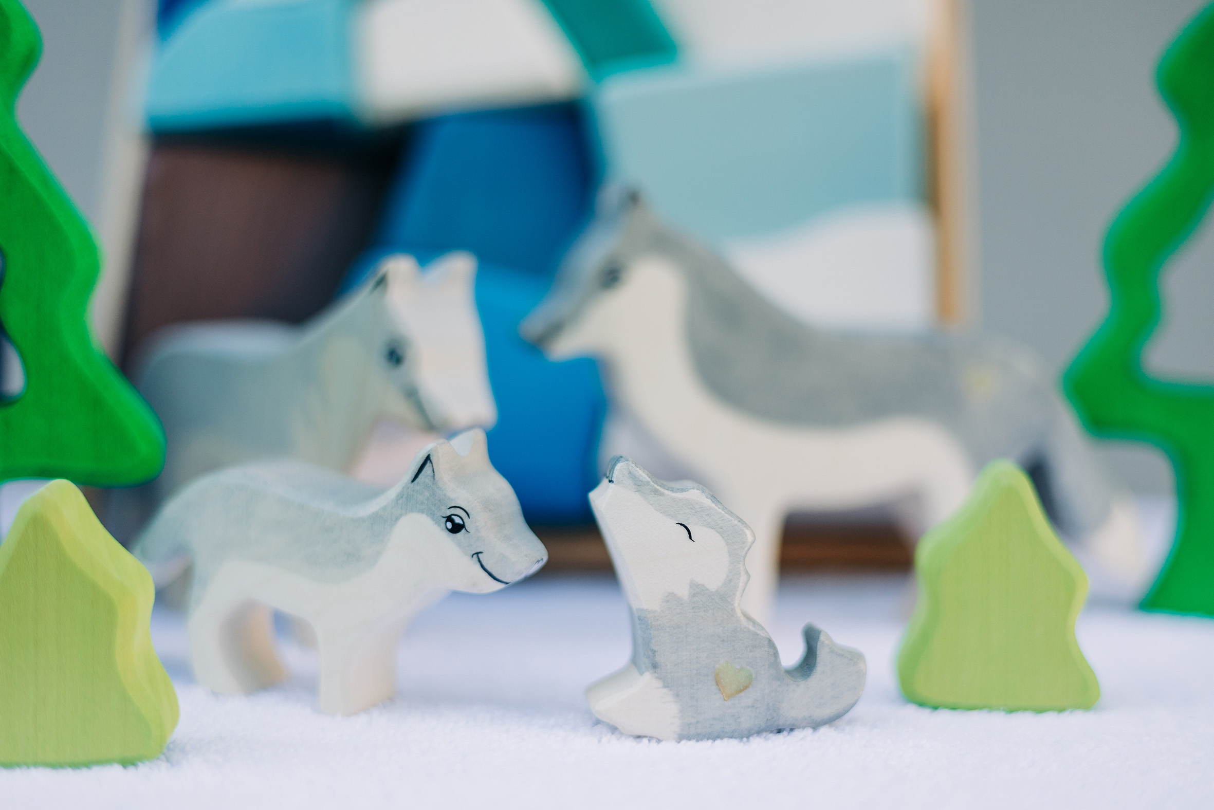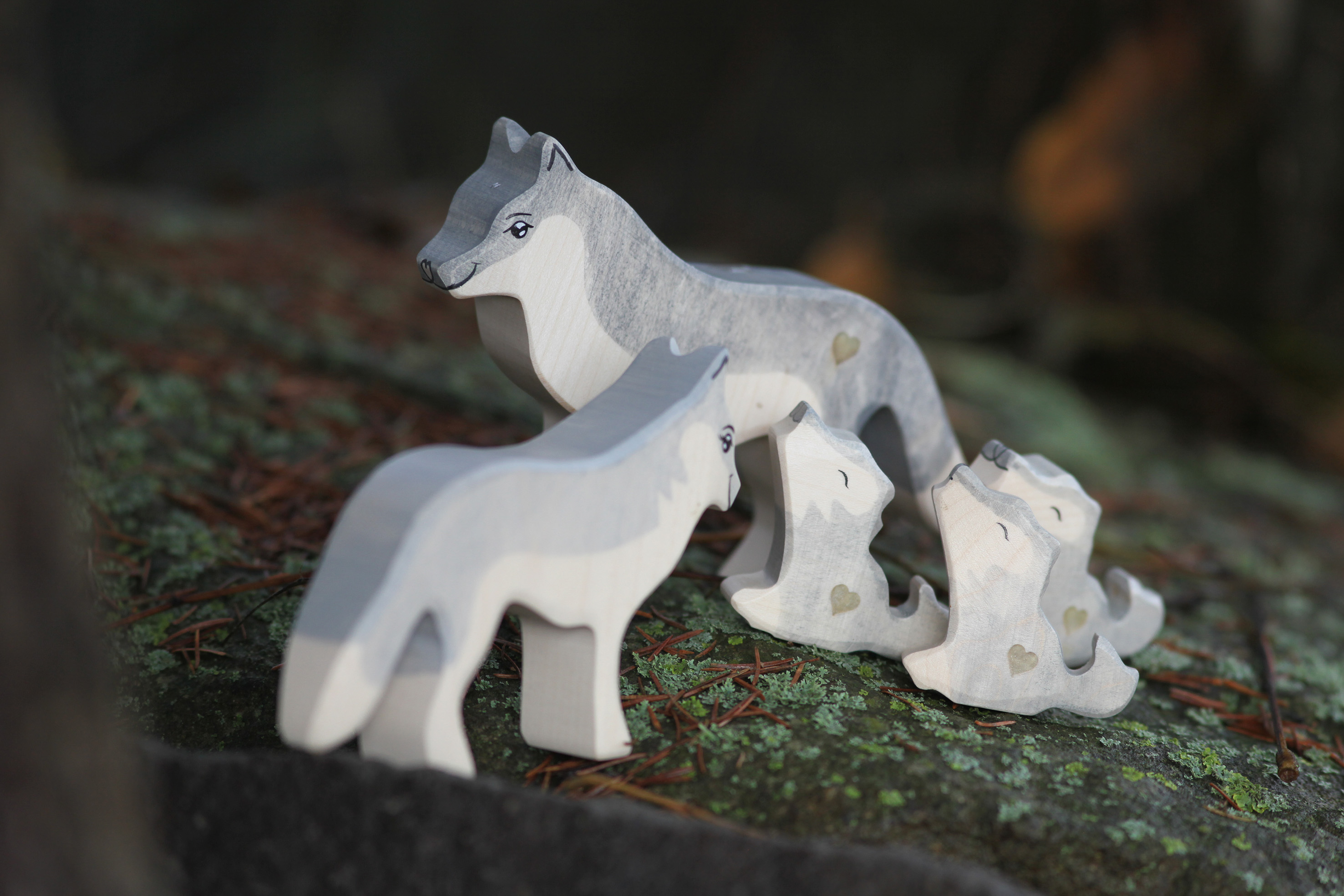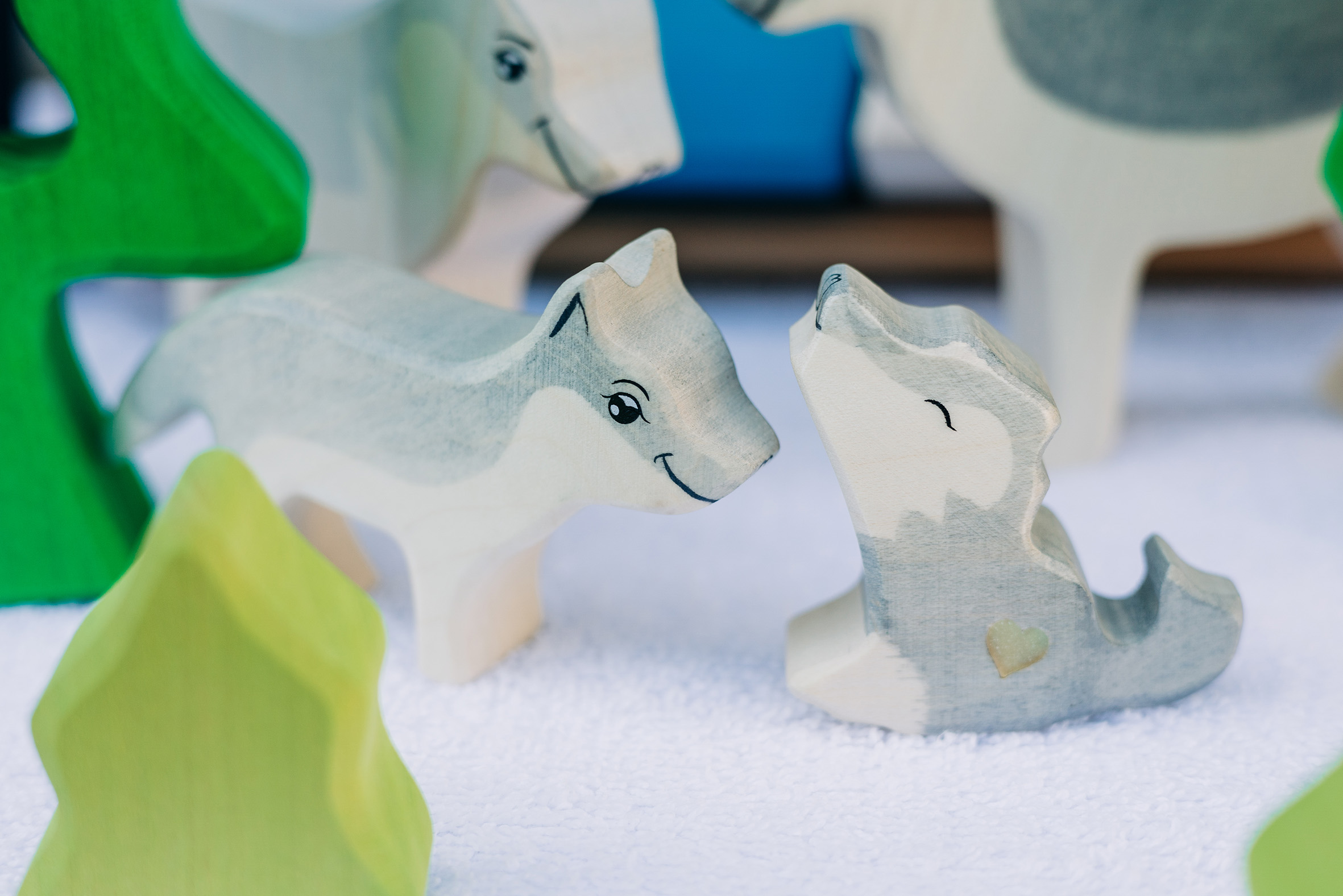 Willkommen im Reich der kleinen Abenteuer! Unsere charmanten Aufstellfiguren einer Wolfsfamilie bringen die Wildnis direkt ins Kinderzimmer – sanft, sicher und voller Fantasie. Die handgefertigten Figuren aus FSC® 100%-zertifiziertem Holz laden Kinder dazu ein, eigene Geschichten zu erfinden, spannende Expeditionen zu erleben und die Welt der Tiere spielerisch zu entdecken. Ob der kleine Wolf das Heulen übt, die Wolfseltern ihre Jungen beschützen oder gemeinsam durch Wälder streifen – jedes Spiel wird zu einem liebevollen Naturerlebnis. Die angenehm glatte Oberfläche, die weichen Formen und die stabile Verarbeitung machen sie zum idealen Begleiter für kleine Hände und große Fantasie.