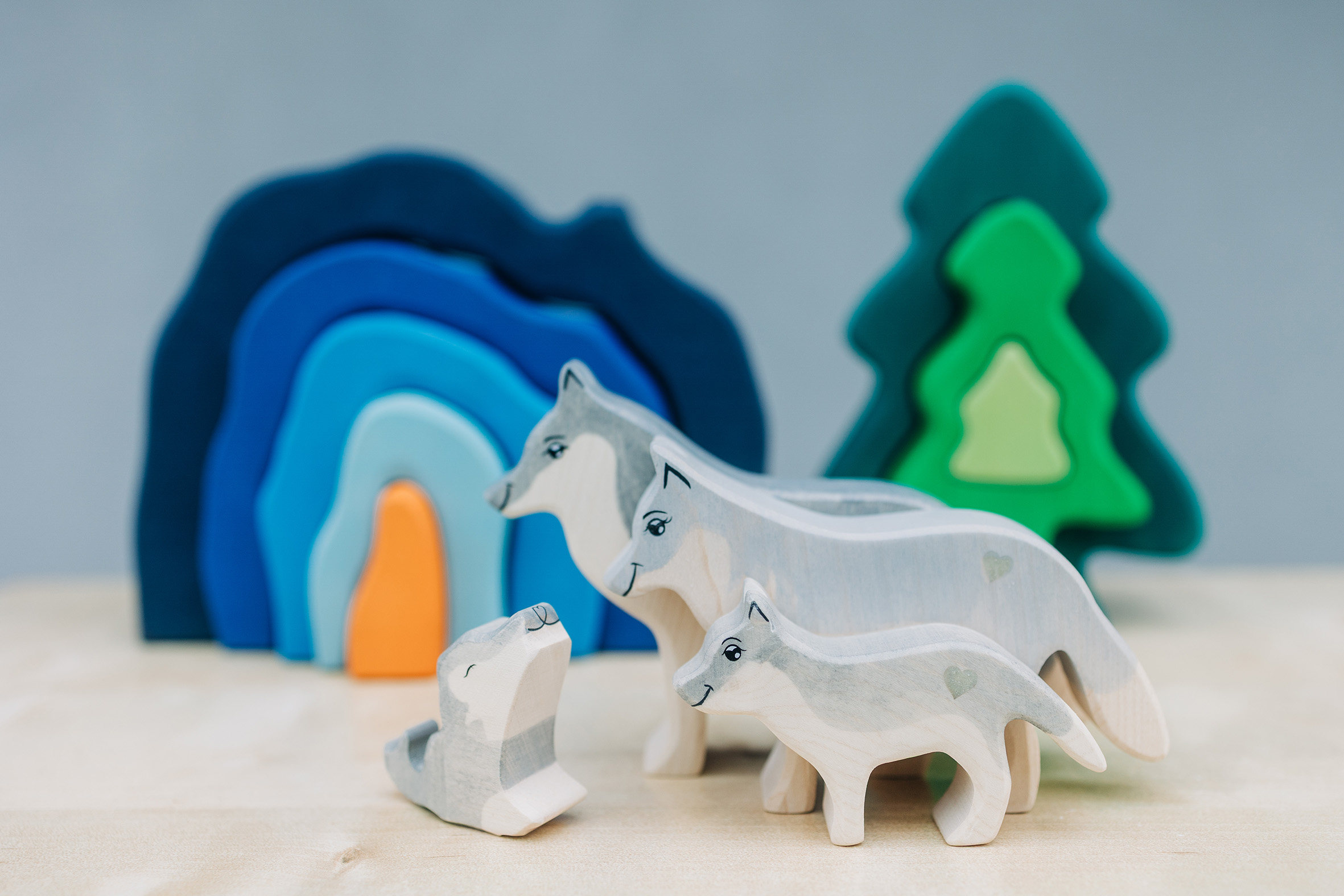 Willkommen im Reich der kleinen Abenteuer! Unsere charmanten Aufstellfiguren einer Wolfsfamilie bringen die Wildnis direkt ins Kinderzimmer – sanft, sicher und voller Fantasie. Die handgefertigten Figuren aus FSC® 100%-zertifiziertem Holz laden Kinder dazu ein, eigene Geschichten zu erfinden, spannende Expeditionen zu erleben und die Welt der Tiere spielerisch zu entdecken. Ob der kleine Wolf das Heulen übt, die Wolfseltern ihre Jungen beschützen oder gemeinsam durch Wälder streifen – jedes Spiel wird zu einem liebevollen Naturerlebnis. Die angenehm glatte Oberfläche, die weichen Formen und die stabile Verarbeitung machen sie zum idealen Begleiter für kleine Hände und große Fantasie.