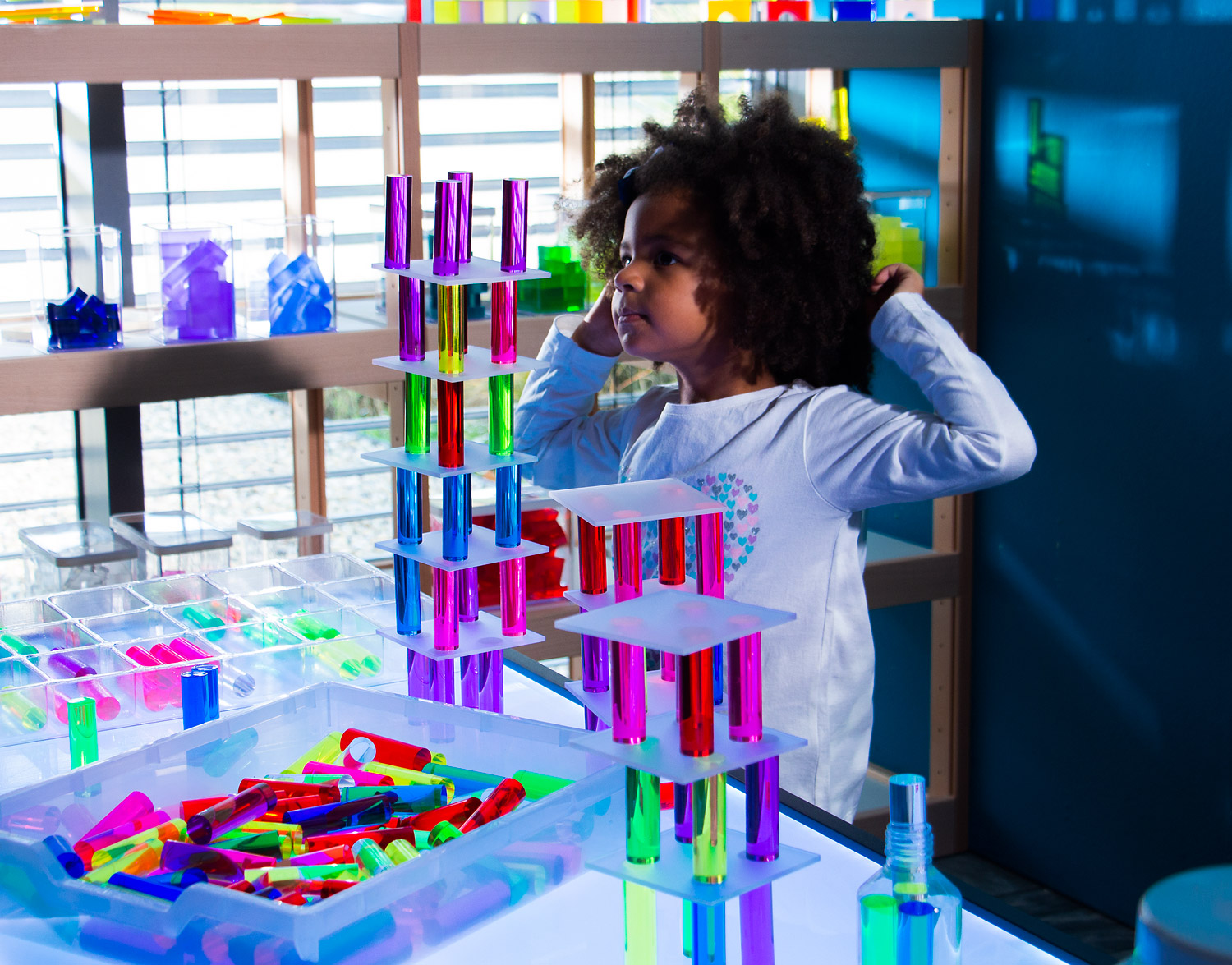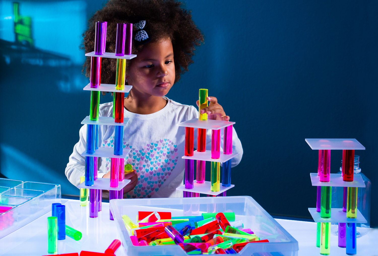 Leuchtende Acrylsäulen von den Maßen passend zu unseren Lumi- und Luxy Bausteinen (z.B. 103 273 oder 103 325) sowie zu den Dusyma Uhl Bausteinen und dem Steckbrett (103 509). Sie lassen sich daher sehr gut mit diesen kombinieren und bereichern dadurch die Formenwelt der Bauwerke.
