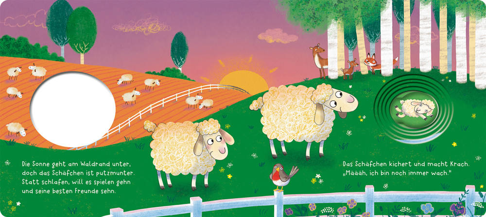 Ein liebevoll gestaltetes Pappbilderbuch zur Einschlafzeit: Ein kleines Schäfchen ist noch wach und sucht spielerisch in den Schlaf. Mit fest angebrachtem Stoffschäfchen zum Ziehen, das ein sanftes „Määäh“ erklingen lässt.