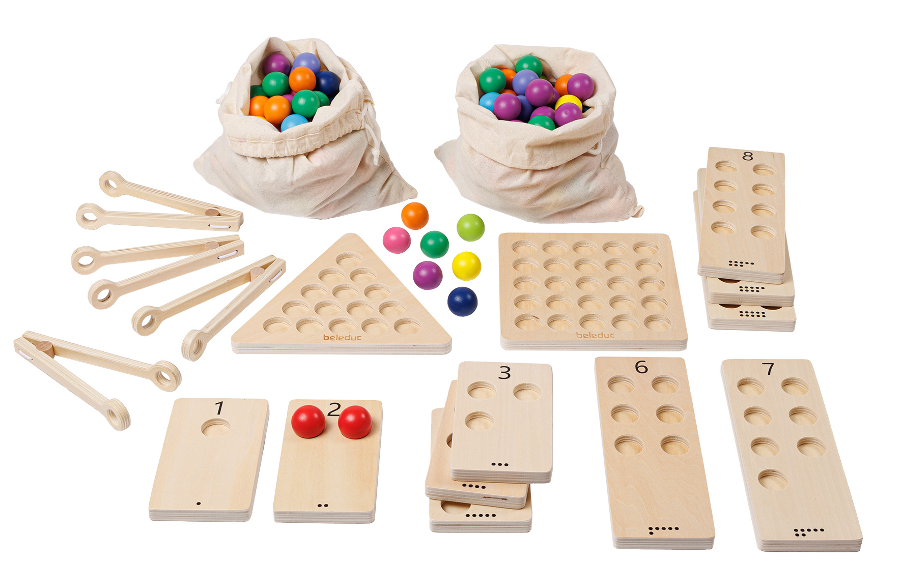 Mit dem Lernspiel Magic Marble entdecken Kinder das Zählen und Sortieren auf spielerische Weise. Sie greifen die farbigen Holzkugeln mit der Zange, stapeln sie auf der quadratischen oder dreieckigen Holzplatte oder legen sie nach Farben sortiert auf die Zahlenbretter. So werden Motorik, Zahlenverständnis und Farberkennung gleichzeitig gefördert. Unterschiedliche Spielvarianten sorgen für immer neue Herausforderungen!