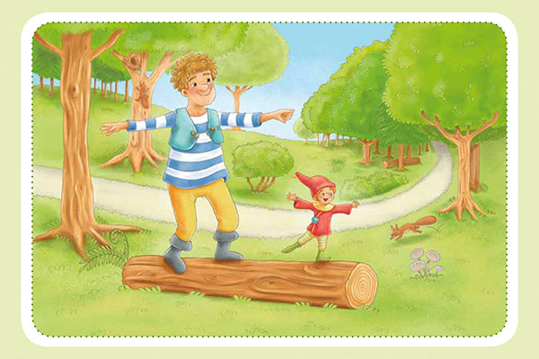 - Eine Geschichte wird erzählt und in Bewegung umgesetzt. Hierbei werden viele grobmotorischen Bewegungen integriert, die sich gegen Ende der aktiven Phase beruhigen.