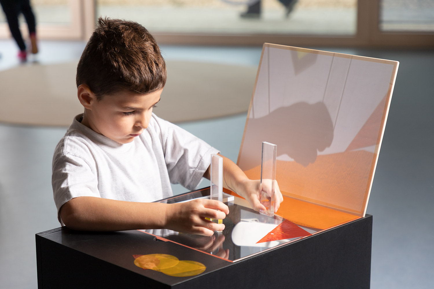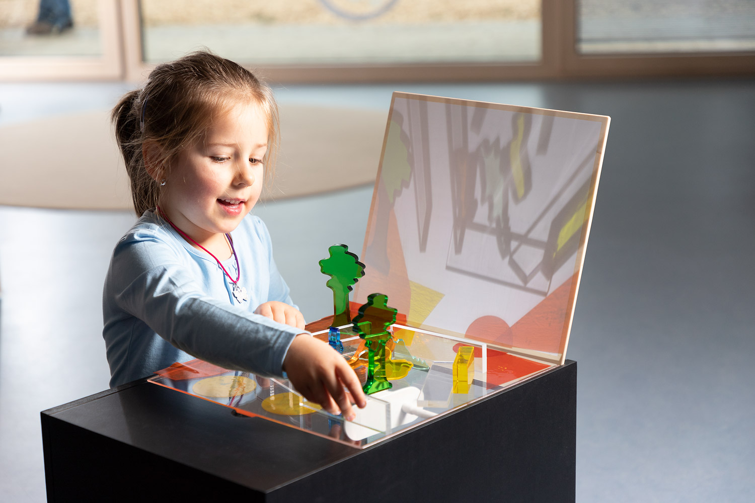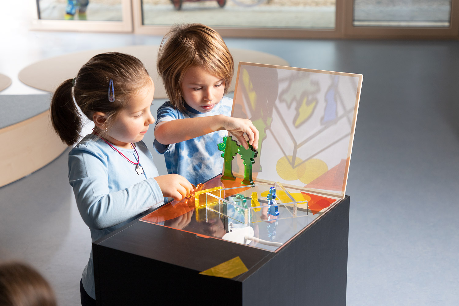 Mit Neugier und Forscherdrang entdecken Kinder das Spiel mit Licht. Dusyma hat speziell hierfür eine mobile Projektorbox mit 2 möglichen Projektionsflächen entwickelt. Es werden physikalische Phänomene sichtbar: die Lichtquelle ist beweglich und der Weg des Lichts nachvollziehbar. Mit einer handelsüblichen Taschenlampe (nicht enthalten) ist die Box mobil im Raum, ohne Stromanschluss, einsetzbar. Durch frei kombinierte Materialien entstehen kreative Kunstwerke, die gleichzeitig Bilder auf der Projektionsfläche sind. Da immer häufiger Overheadprojektoren durch Beamer ersetzt werden, ermöglicht diese Box Kindern weiterhin das Experimentieren mit magisch, beeindruckenden Licht- und Schattenszenen.