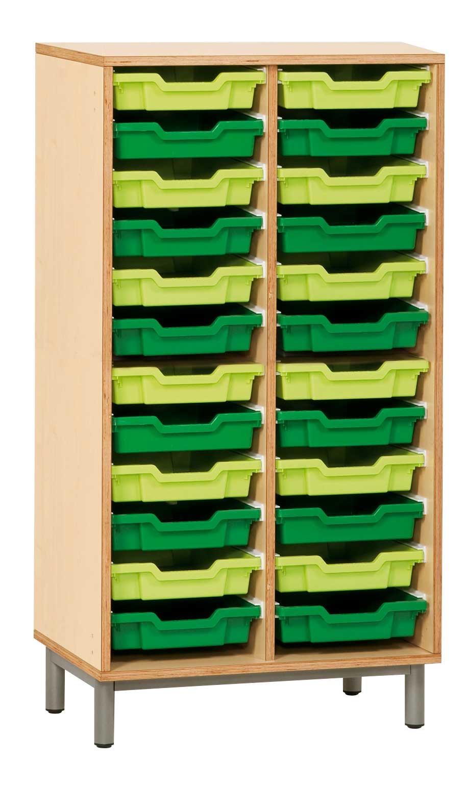 1 Regal für Kunststoffkästen, (1 Mittelseite, 2 offenen Fächern für 24 flache Kunststoffkästen (Größe I) oder 12 große Kunststoffkästen (Größe II) oder gemischt), Kunststoffkästen und Schienen wegen Farbauswahl bitte separat bestellen