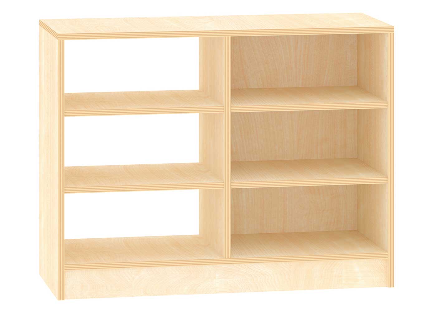 Ideal als Raumteiler nutzbares Regal. Eine Hälfte ist rückseitig geschlossen. Die andere Hälfte beidseitig offen. Je Seite sind 2 verstellbare Fachböden.