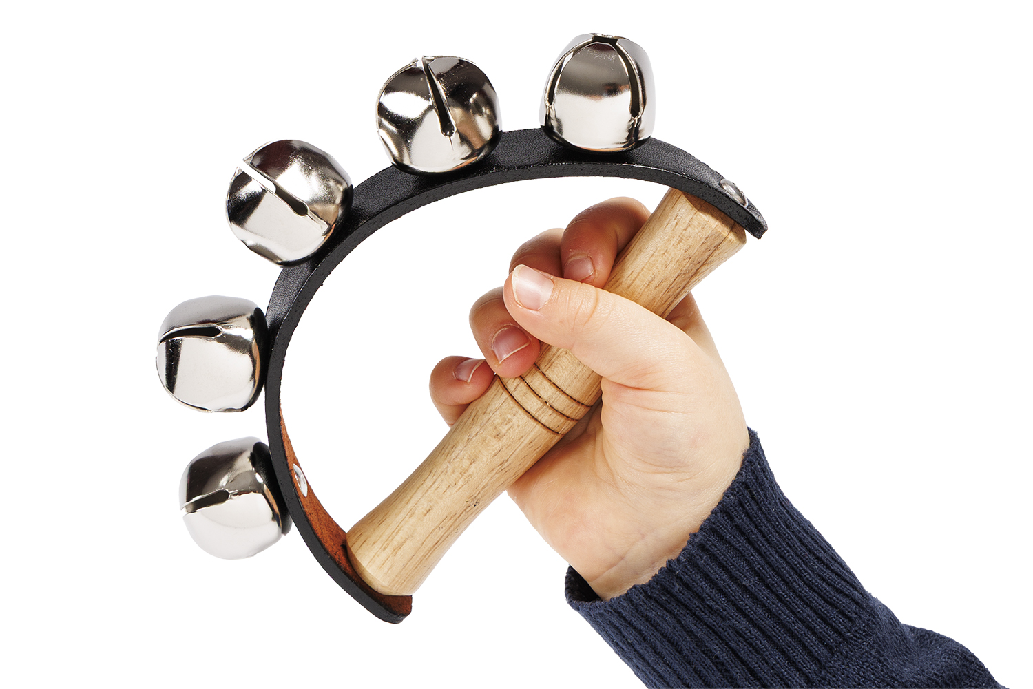 Der Kranz besteht aus einem Holzgriff mit Lederband. Auf dem Band sind fünf Glöckchen in Glockenform befestigt. Die Glöckchen haben einen angenehmen, unaufdringlichen und klaren Klang. Der Glockenkranz eignet sich perfekt, um das Rhythmusgefühl zu trainieren und einen einfachen Einstieg in die Musik zu finden.