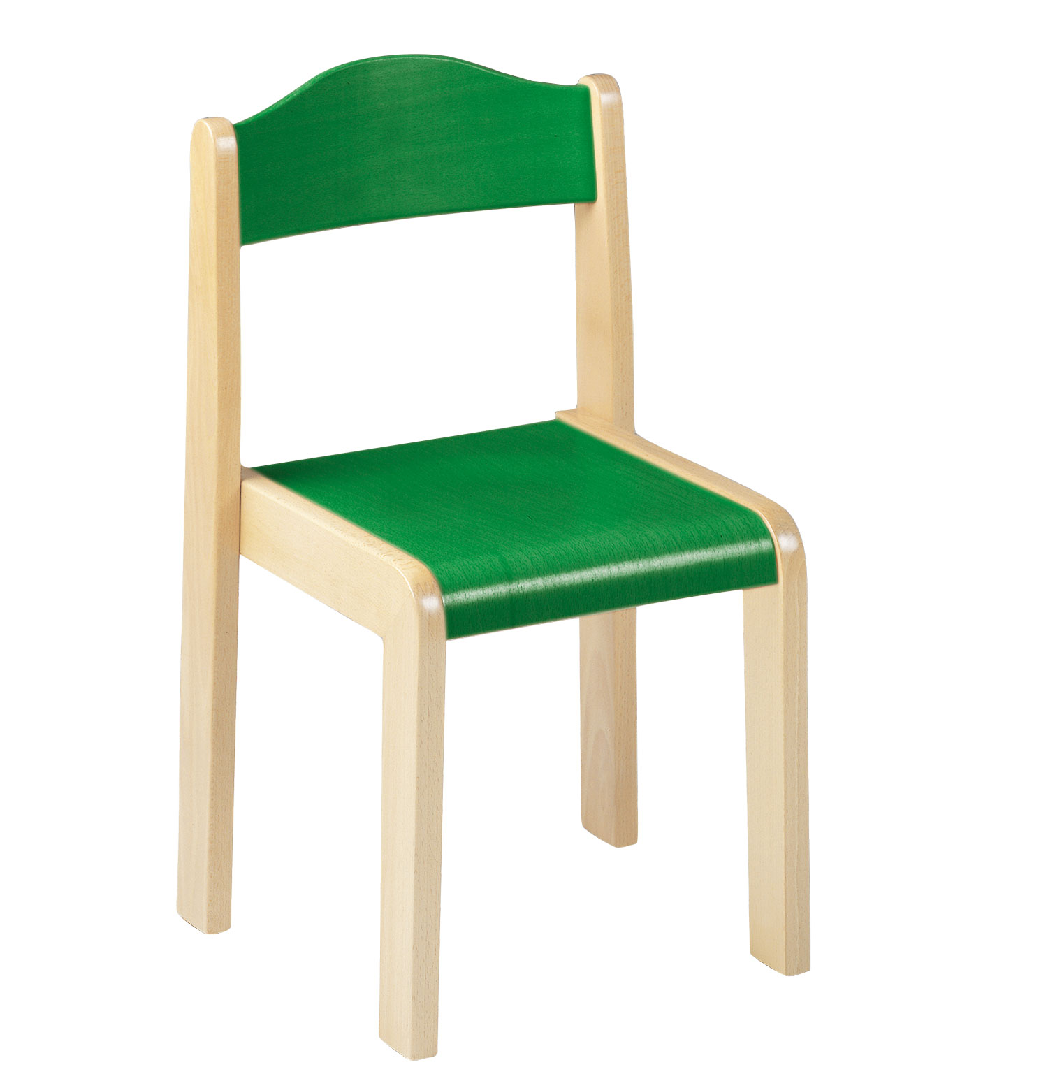 Formschöner und preiswerter Stuhl. Die Schrägstellung der Beine gewährleistet Kippsicherheit.