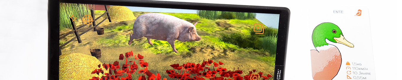 Auf einem Tablet wird ein digitales Lernspiel gespielt
