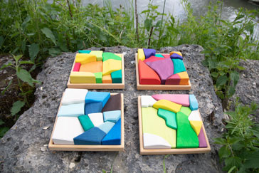 Wenn der Frühlings ins Land zieht, ist die Farbgebung ganz wunderbar zart und bunt. Die Blätter der Bäume öffnen sich unter den warmen Sonnenstrahlen in frischem, jungen Grün. Und die ersten Blumen schmücken Wiesen und Wege in weiß, rosa, lila, gelb und blau.Die wunderschönen Jahreszeiten-Holzbausteine von Glückskäfer sind von einer ganz besonderen Anziehungskraft. Das in den Farben der jeweiligen Jahreszeit harmonisch lasierte Lindenholz hat sanft abgerundete bzw. angefaste Ecken und Ränder. Die Formen der Holzbausteine sind gerundet und sehr schön geschwungen - aber es sind keine regelmäßigen Formen wie Würfel zu finden. Das Raue der unlackierten Holzoberfläche, durch welche die schöne Maserung des Holzes durchscheint, lässt die Bauklötze sehr gut aufeinander "haften". Daher wird mit den Jahreszeiten-Bauklötzen ein ganz besonders kreativer, freier Bau-Impuls im Kind gefördert. Hochwertige, sorgfältig hergestellte Holzbausteine aus guten Naturmaterialien sind ein pädagogisch sehr wertvolles und zeitloses Holzspielzeug für Kinder. Im fantasievollen, ruhigen Spiel der Kinder kann so aus den freien Formen immer Neues entstehen. Ganze Spielewelten, die zusammen mit Holztieren, Figuren und Püppchen, Dekorationstüchern und Naturmaterialien ausgebaut und kreativ erschaffen werden. Entgegen den Spielzeugen, denen ein fester Spielsinn bereits eingeschrieben ist, wird hier das Freie im Spiel der Kinder pädagogisch sanft gefördert und so dem kraftvollen Impuls des Erschaffens aus der eigenen Fantasie Raum gegeben.In diesem Rahmen ist es auch so wichtig, dem Spiel der Kinder den notwendigen Raum und die Ruhe zu gewähren. Nur wo Kinder ganz eintauchen können in ihr Schaffen, kann sich die große Kraft des kindlichen Spiels ganz entfalten. Und unsere Kinder in ihrer Entwicklung stärken und festigen.