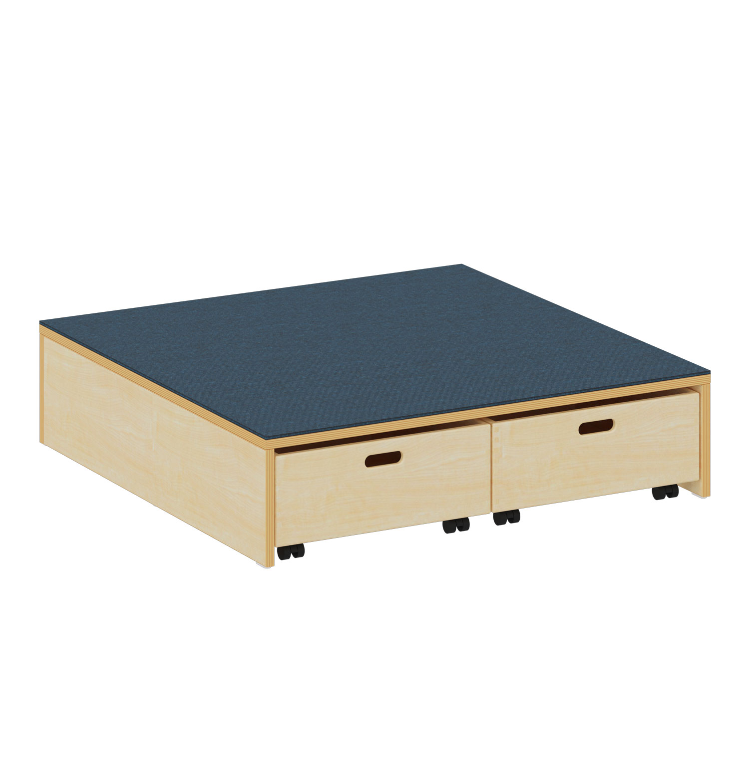 Inhalt: Spielpodest groß mit Tretfort Teppich Belag, inkl. 3 Rollkästen (47,5 cm breit, 47,5 cm tief, 21,5 cm hoch)