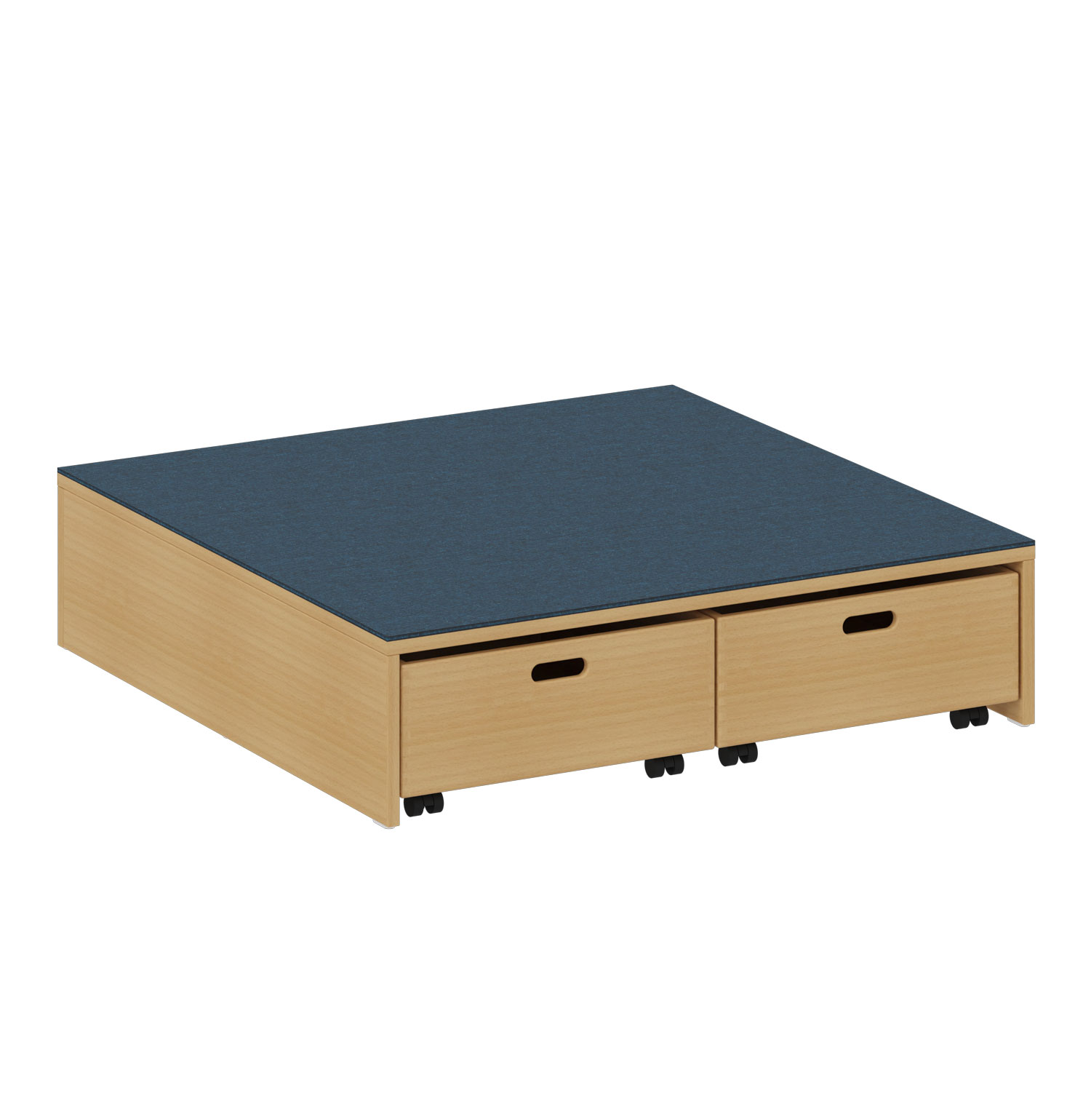 Inhalt: Spielpodest groß mit Tretfort Teppich Belag, inkl. 3 Rollkästen (47,5 cm breit, 47,5 cm tief, 21,5 cm hoch)