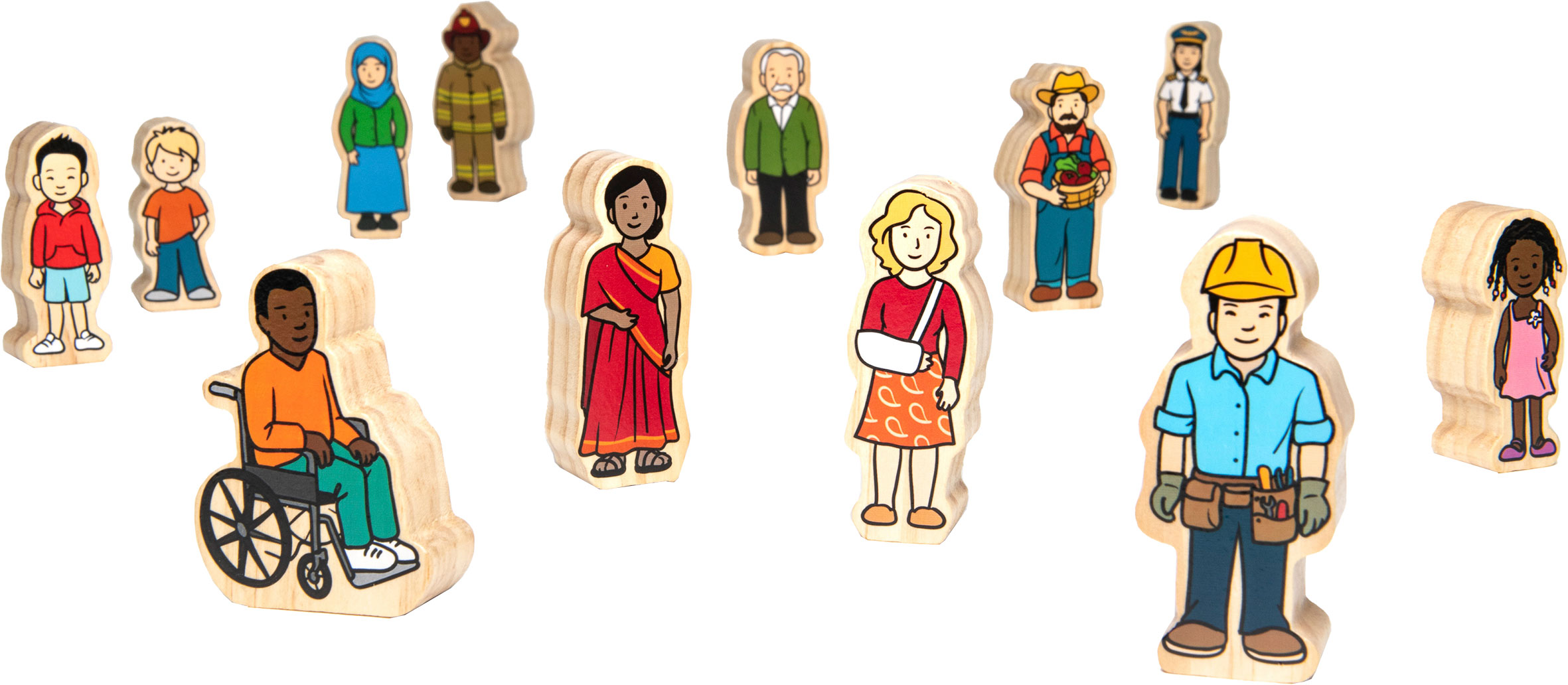 Die Wooden Village People repräsentieren die Vielfalt der heutigen Gesellschaft. Dieses 42-teilige Set besteht aus multikulturellen Familien und Berufen mit einer großen Bandbreite an Altersgruppen, ethnischen Hintergründen und Geschlechtern. Perfekt für fantasievolles Spielen in einer kleinen Welt! Hergestellt aus hochwertigem, nachhaltig gewonnenem neuseeländischem Kiefernholz.