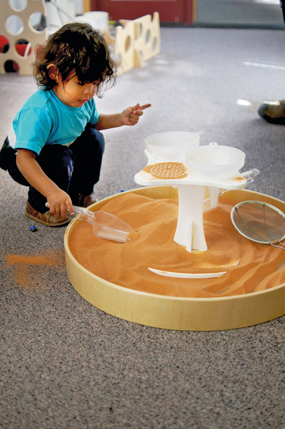 Schon die Kleinsten können mit ersten Schütt- und Siebversuchen experimentieren. Durch die passende Höhe sehen sie direkt, was passiert. Durch sein beständiges Material kann das Trichter-Set sowohl drinnen und draußen als auch mit feuchten Materialien verwendet werden.