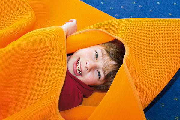 Zur Ruhe kommen, den eigenen Atem spüren und sich selbst wahrnehmen – dies ermöglicht das „Cocodu“. Es besteht aus einem besonderen licht- und luftdurchlässigen Gewebe, welches für ein gutes Klima im Inneren sorgt. Die Anfertigung entspricht einer Hülle, die wie ein Kokon Geborgenheit vermittelt. Durch das Cocodu entsteht ein auditiv und visuell sinnesreduzierter Raum zur Förderung vestibulärer und tiefensensorischer Erfahrungen. Neue Bewegungsimpulse entstehen, indem man sich beispielsweise gegen den Stoff dehnt oder durch die eigene Streckung den gesamten Raum ausfüllt.