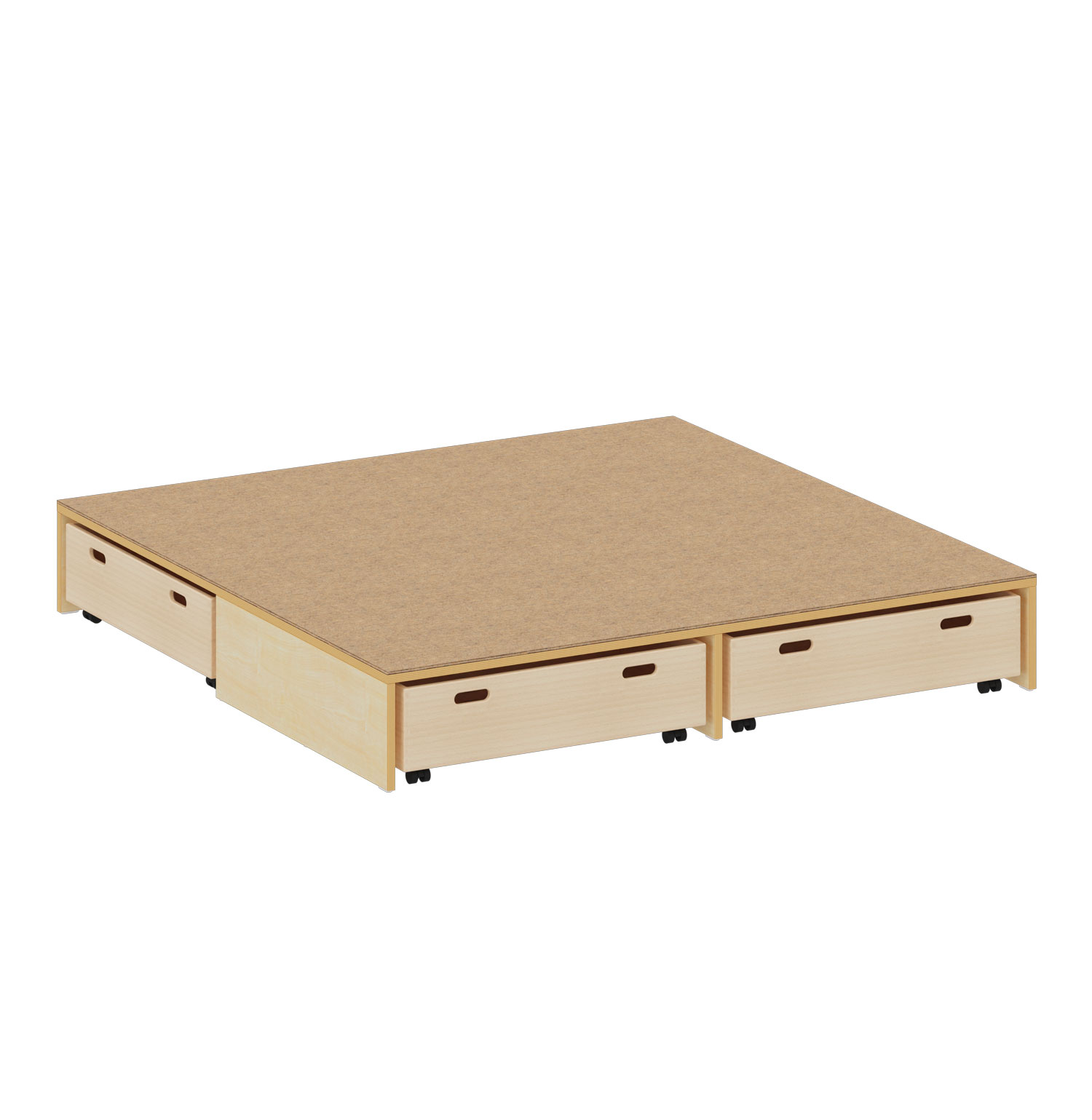 Großes Spielpodest mit Stauraum in den passenden Rollcontainern (max. 4 Stück). (Rollcontainer bitte separat bestellen)