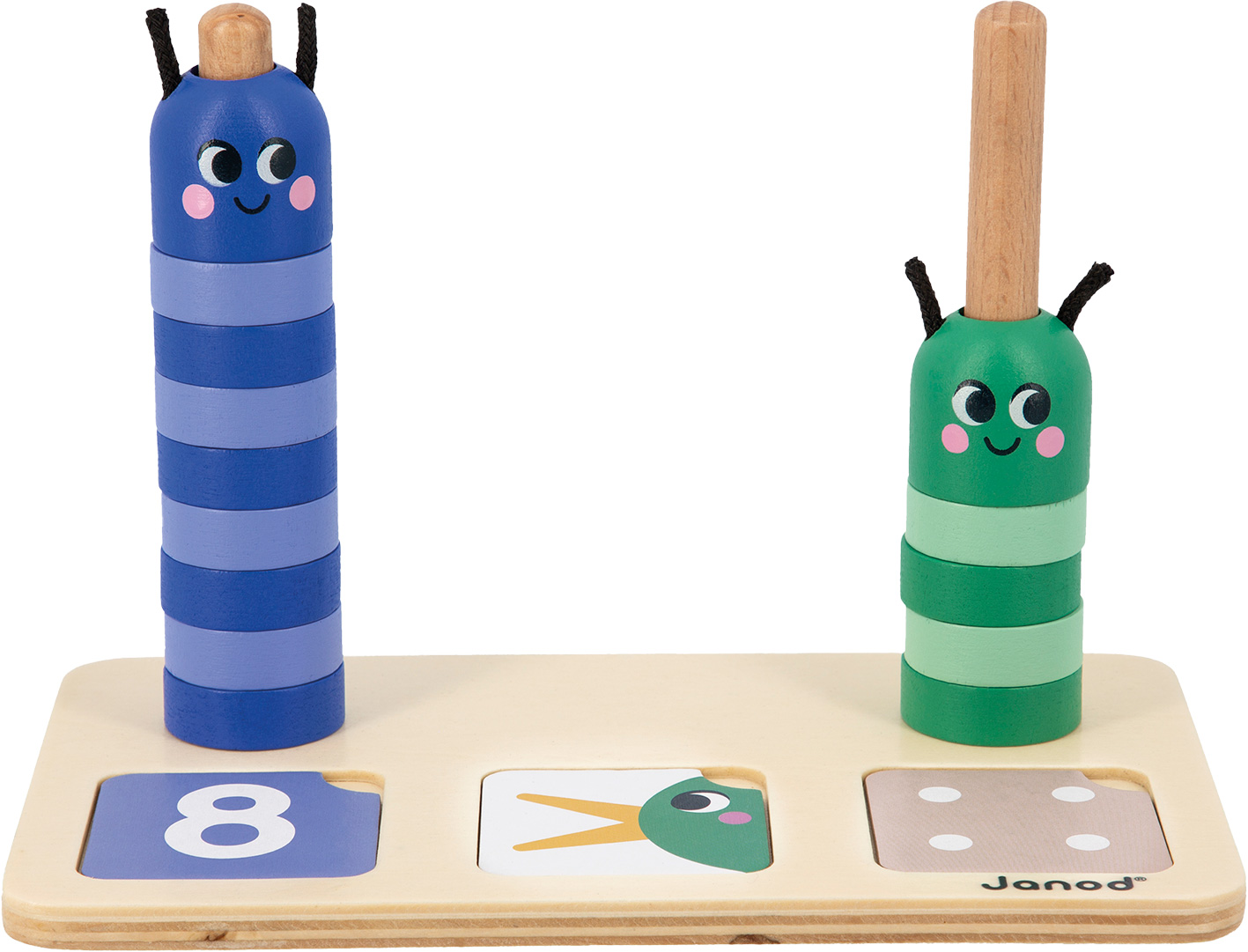Lernen macht Spaß mit diesen beiden Raupen! Kinder üben das Zerlegen von Zahlen, indem sie bunte Perlen auf den Raupenkörper stecken und so Mengen erfassen. 33 Karten zeigen Zahlen, Finger oder Würfelkombinationen, und mit weiterführenden Vergleichskarten lernen Kinder Begriffe wie ‚größer als‘ und ‚kleiner als‘.